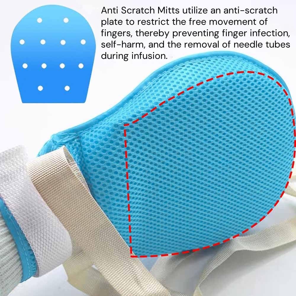 Breathable Comfort: Featuring dual-sided 3D mesh for 360° airflow, these care restraint mittens combine reinforced edging with sturdy comfort for extended wear.