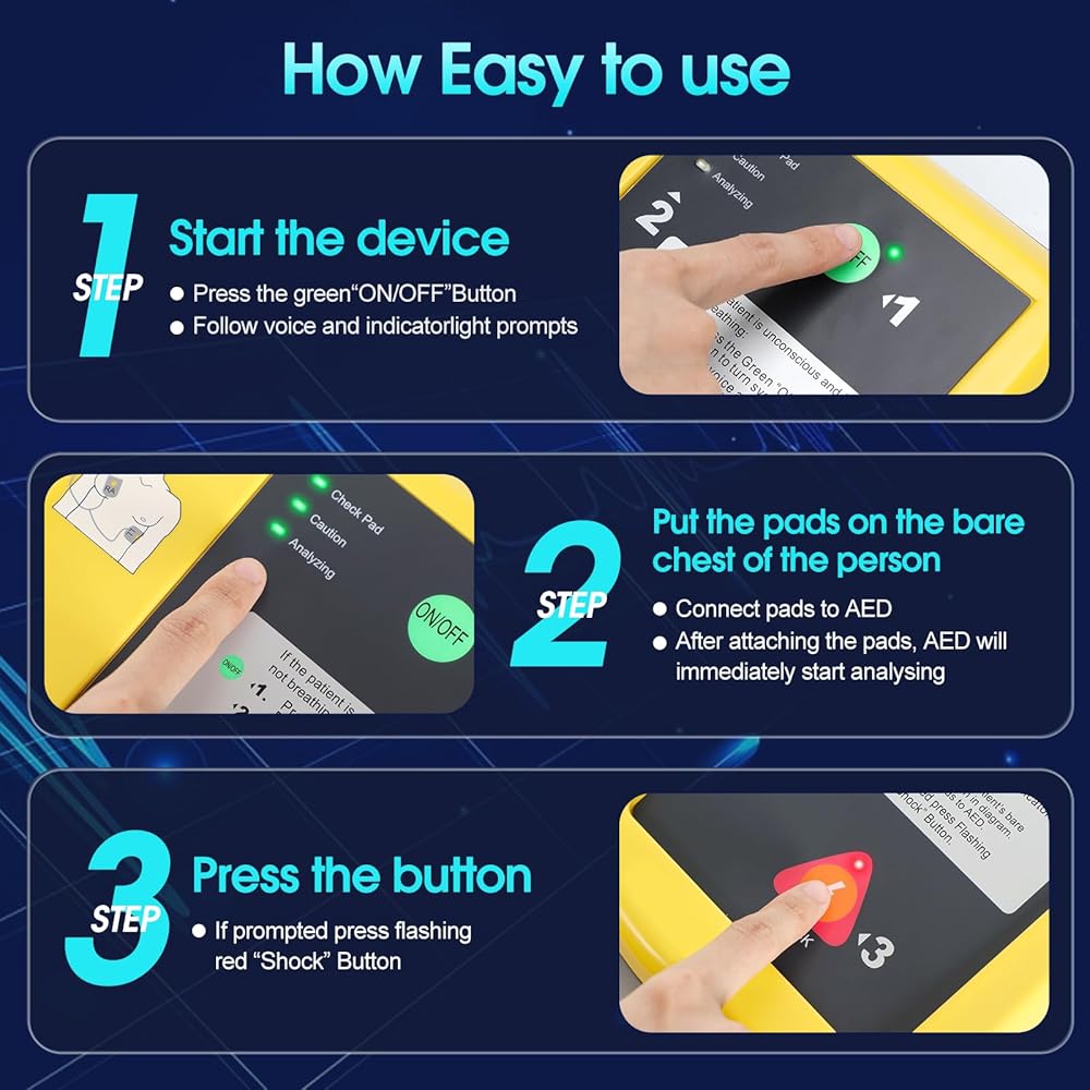 مزيل رجفان القلب AED معدات الطوارئ المحمولة المنزلية مزيل رجفان القلب الخارجي التلقائي
