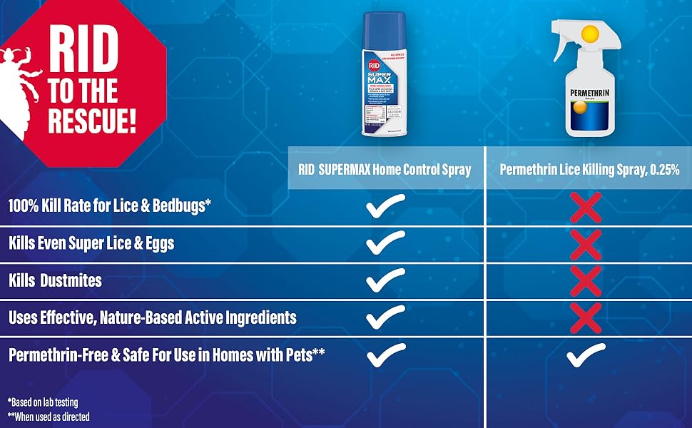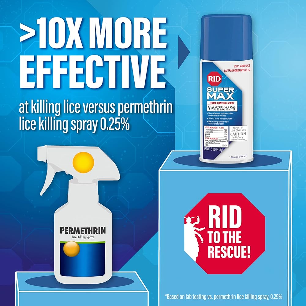 10X MORE EFFECTIVE VERSUS TRADITIONAL PERMETHRIN SPRAY: This formula kills even super lice & eggs. Lab testing shows that RID SUPER MAX Home Control Spray kills 100% of lice