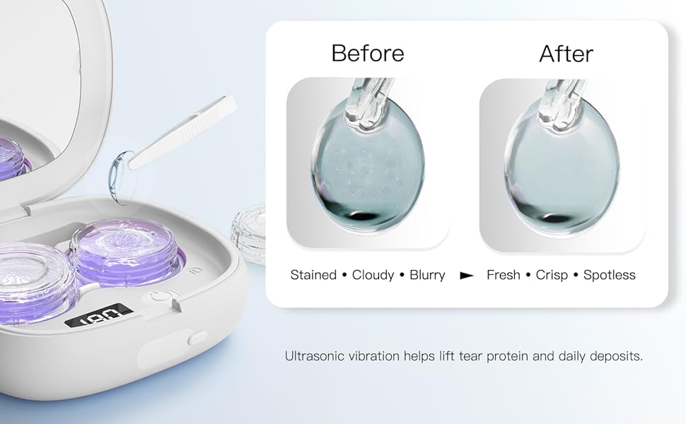 【توافق واسع للعدسات اللاصقة】متوافق مع معظم أنواع العدسات، بما في ذلك العدسات اللاصقة الناعمة والملونة وعدسات RGP والصلبة وOrtho-K. للحصول على نتائج تنظيف مثالية، استخدم آلة تنظيف العدسات اللاصقة هذه مع محلول العدسات اللاصقة (محلول العدسات اللاصقة غير متضمن)