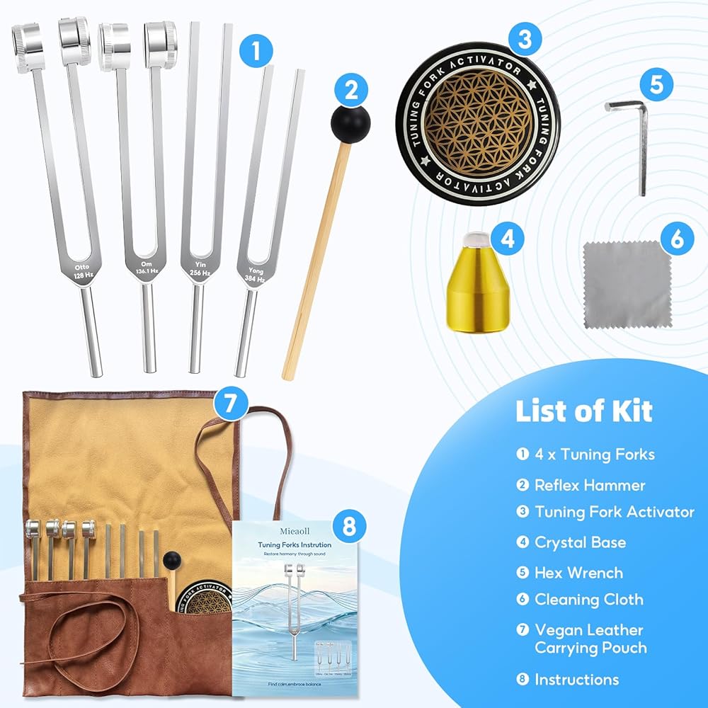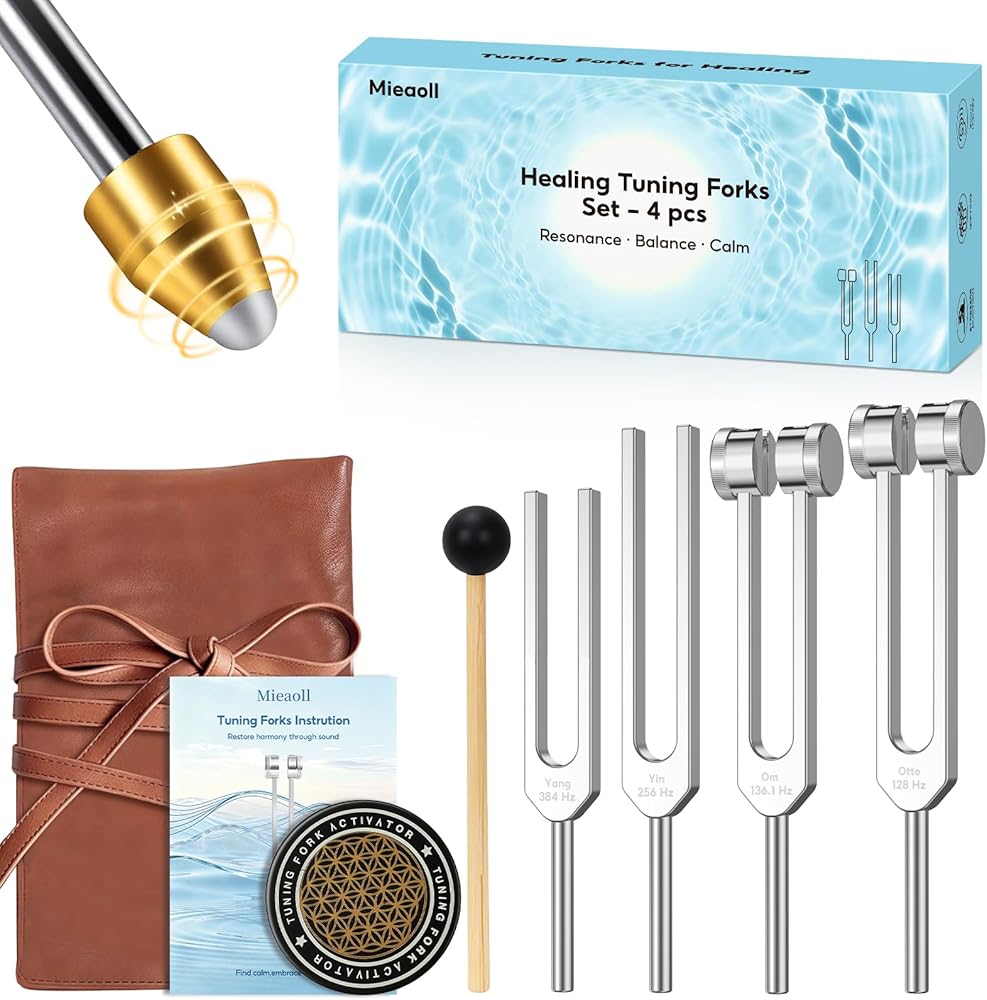 شوكة ضبط للشفاء، مجموعة شوكة ضبط 128 هرتز 136 هرتز 256 هرتز 384 هرتز للتأمل واليوجا والعلاج بالطاقة الشاكرا، هدية شفاء مثالية للأم أو الصديقة في عيد الأم، عيد الميلاد