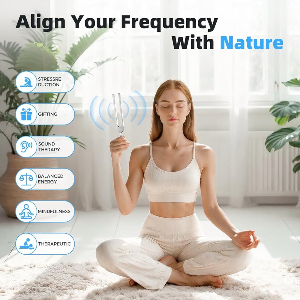 محاذاة مع تردد الأرض: الشوكة 136.1 هرتز - غالبًا ما تسمى "تردد الأرض". يساعد الاهتزاز الناعم الذي يتم وضعه على صدرك أو معصمك أو كتفك على تهدئة الأفكار المتسارعة وإبطاء تنفسك وإعادتك إلى جسمك. مثالية لتخفيف التوتر بعد الروتين المزدحم أو إعداد عقلك للتأمل