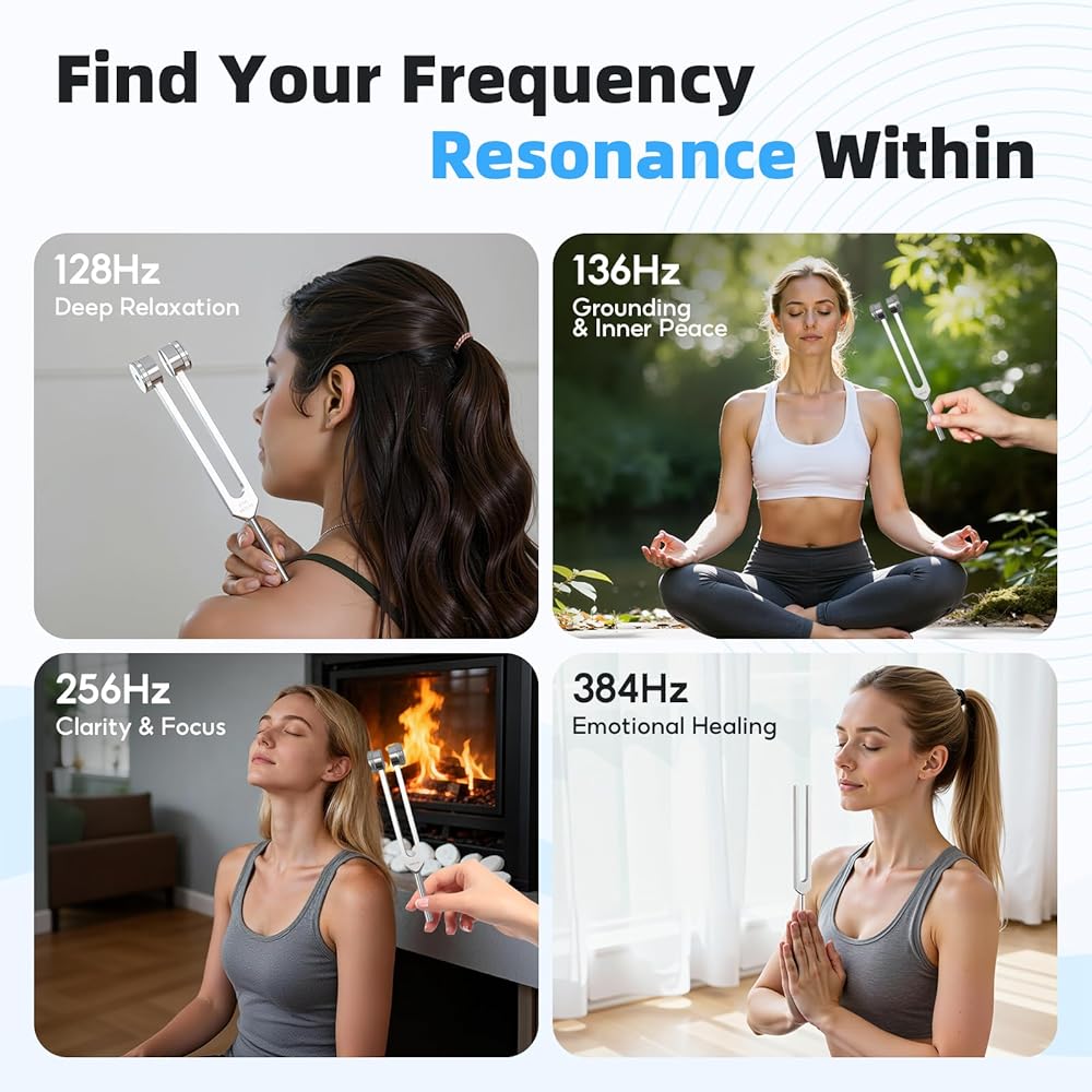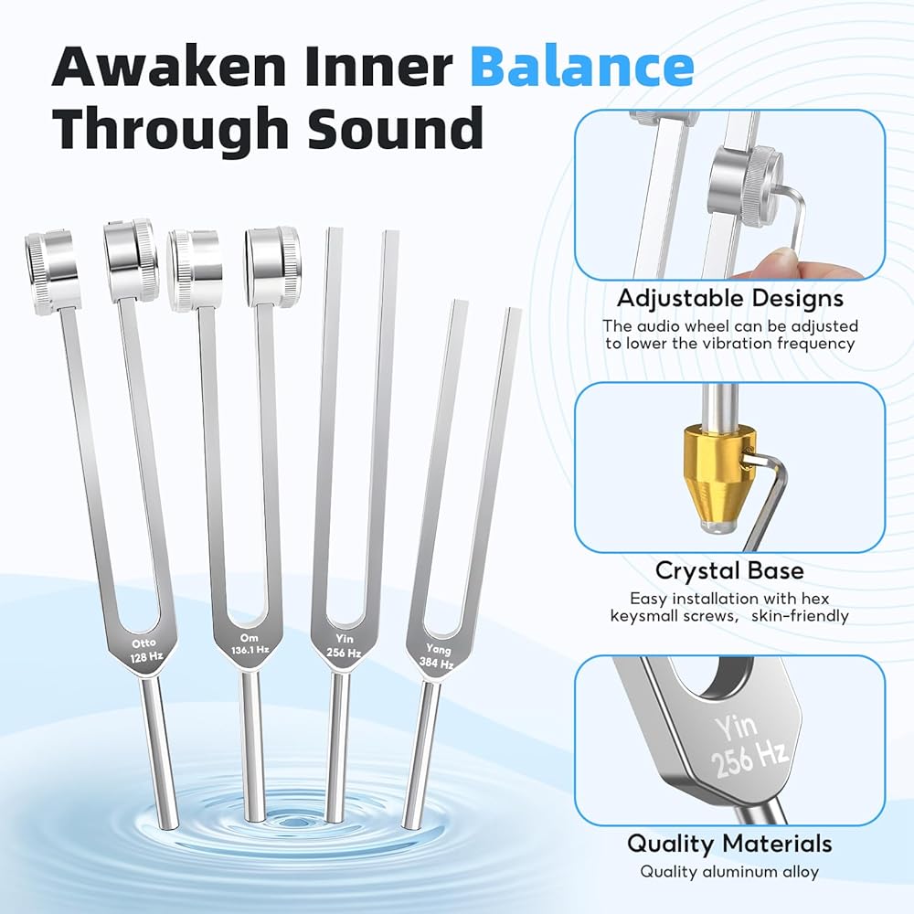 رنين نقي لصفاء دائم: كل شوكة مصنوعة من سبائك الألومنيوم عالية الجودة، مما ينتج لونًا نقيًا وثابتًا مع استدامة طويلة ولطيفة. يضمن الجسم الناعم غير المغناطيسي رنينًا دقيقًا مثاليًا لمساحات التأمل أو ممارسة اليوجا أو جلسات الشفاء أو "الزاوية الهادئة" الشخصية في المنزل.