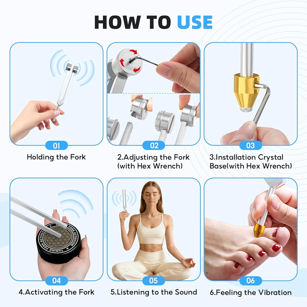 مناسب للمبتدئين مع متعة بدون جهد: يأتي مع دليل واضح وودود يوضح بالضبط كيفية تنشيط شوكات الضبط ومكان تطبيق الاهتزازات للتأريض والاسترخاء ومحاذاة الطاقة. لا توجد خبرة مطلوبة - ما عليك سوى الإضراب والتنفس والاستمتاع بالطقوس اليومية الصغيرة التي تعيدك إلى الهدوء