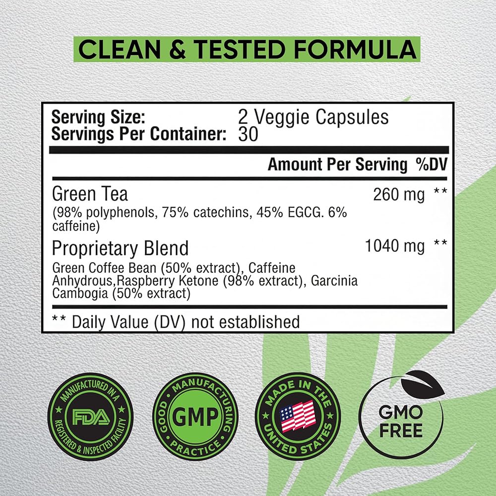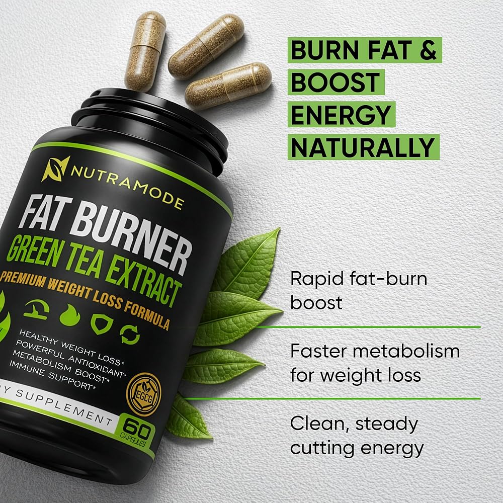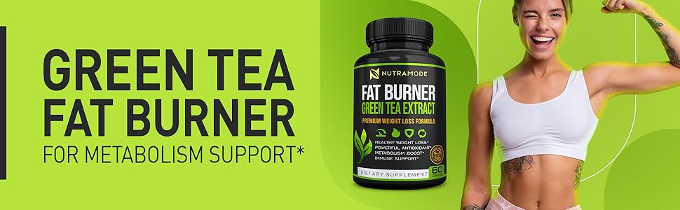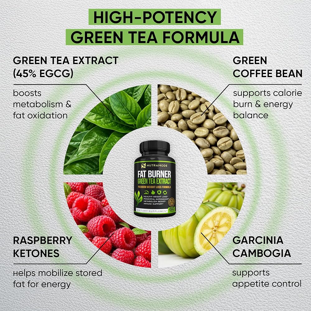 NutraMode Green Tea Fat Burner، اشعر بالفرق - مستخلص الشاي الأخضر المجرب سريريًا (45% EGCG) يشعل محرك حرق الدهون في الجسم لإذابة دهون البطن العنيدة وتعزيز النتائج المرئية بشكل أسرع من النظام الغذائي وحده.