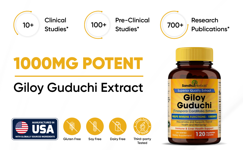 𝗦𝗨𝗣𝗘𝗥𝗜𝗢𝗥 𝗤𝗨𝗔𝗟𝗜𝗧𝗬 𝗚𝗜𝗟𝗢𝗬 𝗚𝗨𝗗𝗨𝗖𝗛𝗜 𝗘𝗫𝗧𝗥𝗔𝗖𝗧 - يتم تصنيع كبسولات جيلوي جودوتشي عالية القوة وتعبئتها واختبارها وتوزيعها في الولايات المتحدة الأمريكية وفقًا لمعايير ممارسات التصنيع الجيدة الصارمة. وهي مغلفة في كبسولات نباتية سهلة البلع وخالية من الغلوتين وفول الصويا ومنتجات الألبان. زجاجة واحدة تقدم 120 كبسولة نباتية. تم اختباره وتصنيعه من قبل طرف ثالث في منشأة معتمدة من NSF.