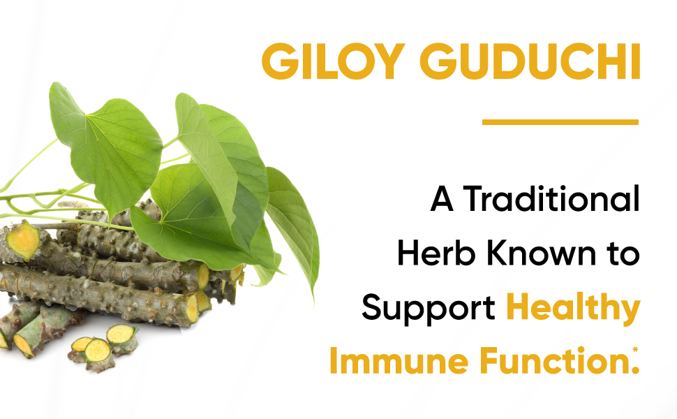 . 𝗦𝗨𝗣𝗣𝗢𝗥𝗧 - نبات جيلوي، العشب التقليدي الداعم يدعم الاستجابة المناعية الصحية في الجسم. أيضًا، يساعد جيلوي جودوتشي، بخصائصه المضادة للأكسدة، على تخفيف الإجهاد التأكسدي عن طريق تحييد الجذور الحرة. *