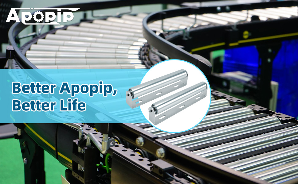 أبعاد المنتج: أسطوانة فولاذية مجلفنة: قطر 1.5 بوصة، طول 10 بوصة BF؛ المحور الفولاذي المجلفن: قطره 1/4 بوصة؛ حامل الفولاذ المجلفن: سمكه 1/8 بوصة، طوله 10 3/4 بوصة BF. يتيح تصميم Apopip المحمّل بنابض التثبيت والإزالة بسرعة، مما يقلل من وقت الصيانة لأنظمة النقل.
