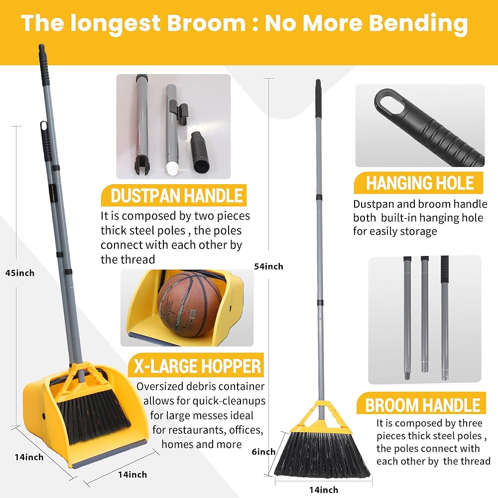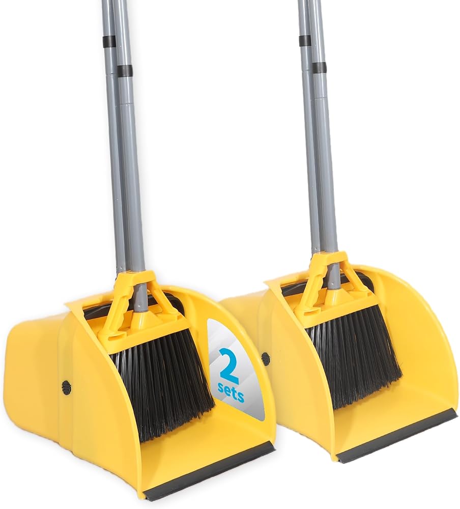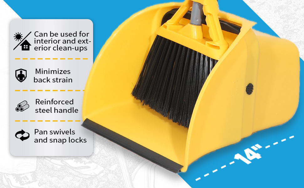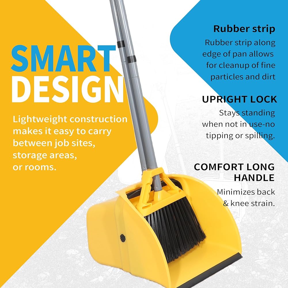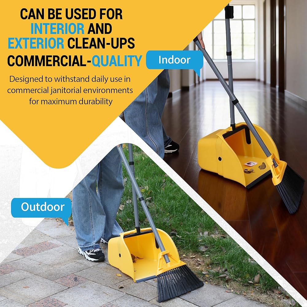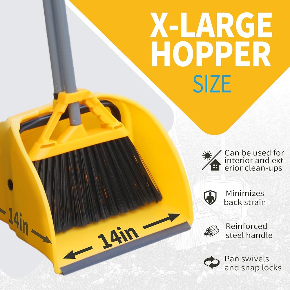 مجموعة المكنسة التجارية والمجارف، مجرفة حطام الردهة الكبيرة (14 بوصة × 14 بوصة)، مكنسة شديدة التحمل (عرض 14 بوصة)، للتنظيف الداخلي والخارجي، مجموعتان، أصفر