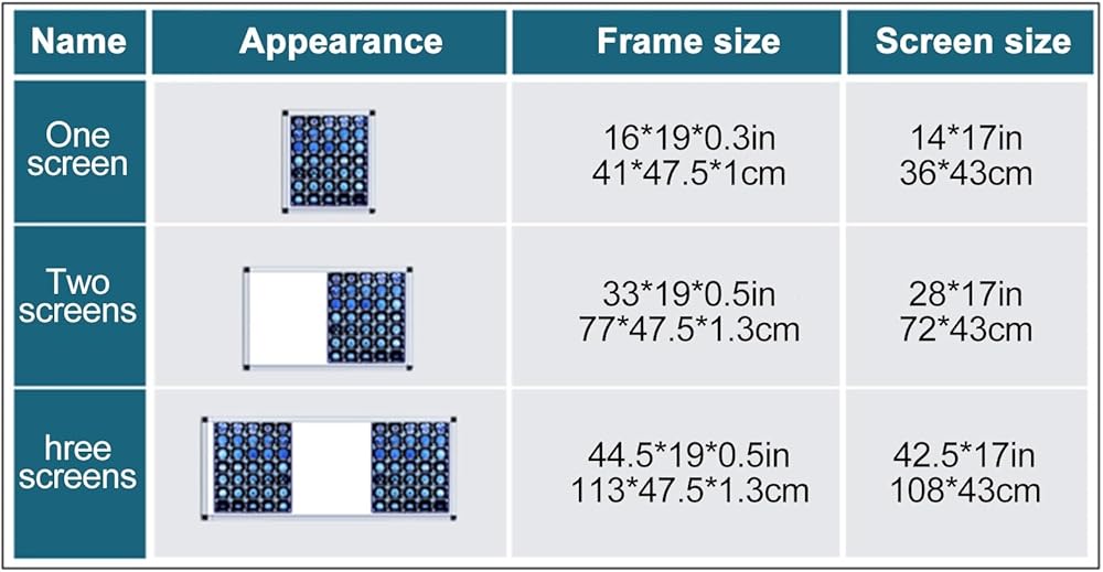 Product Dimensions: 16x19x0.3in/41x47.5x1cm, 33x19x0.5in/77x47.5x1.3cm, 44.5x19x0.5in/113x47.5x1.3cm