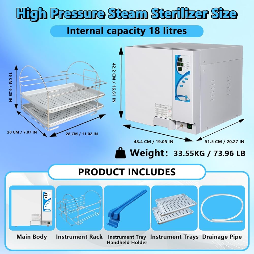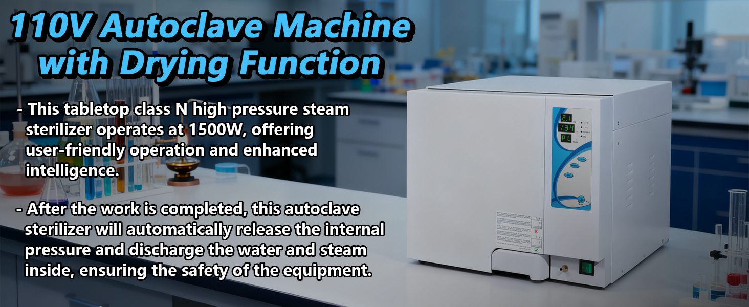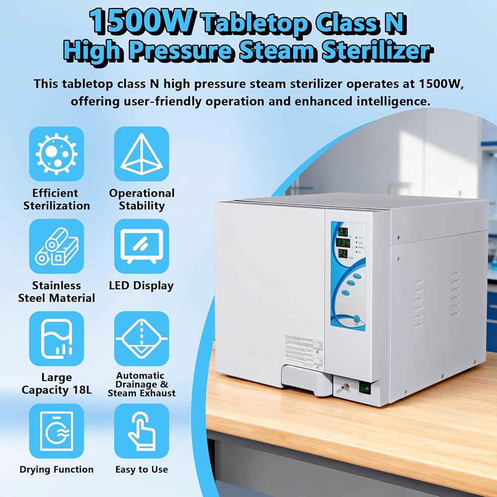 ترقية جديدة معقم الأوتوكلاف سعة 18 لترًا، معقم بخاري عالي الضغط فئة N بقدرة 1500 وات، آلة الأوتوكلاف 110 فولت مع وظيفة التجفيف، قفل باب آمن، تصريف تلقائي وعادم بخار (18 لترًا)