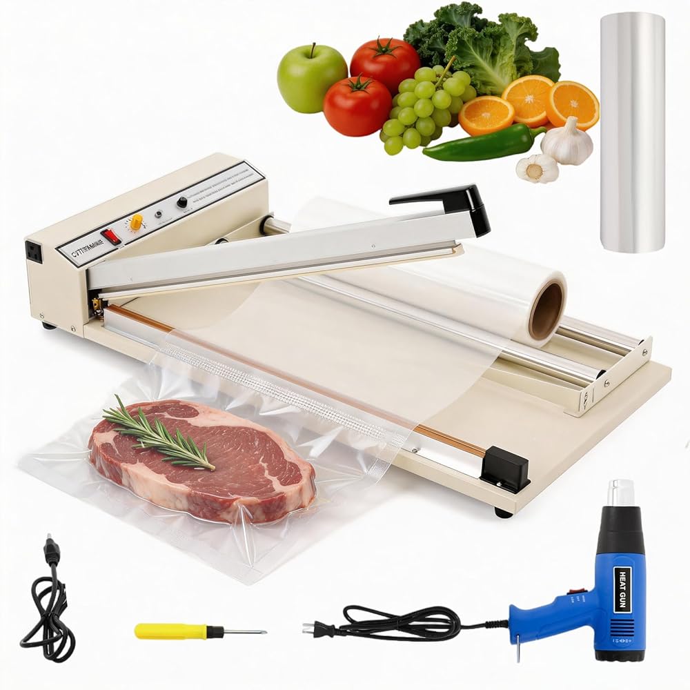 • Complete Package:This shrink wrap machine for packaging includes a heat sealer, shrink wrap gun, a roll of film, two English manuals, and all necessary accessories—everything you need to start packaging immediately for commercial or personal projects.