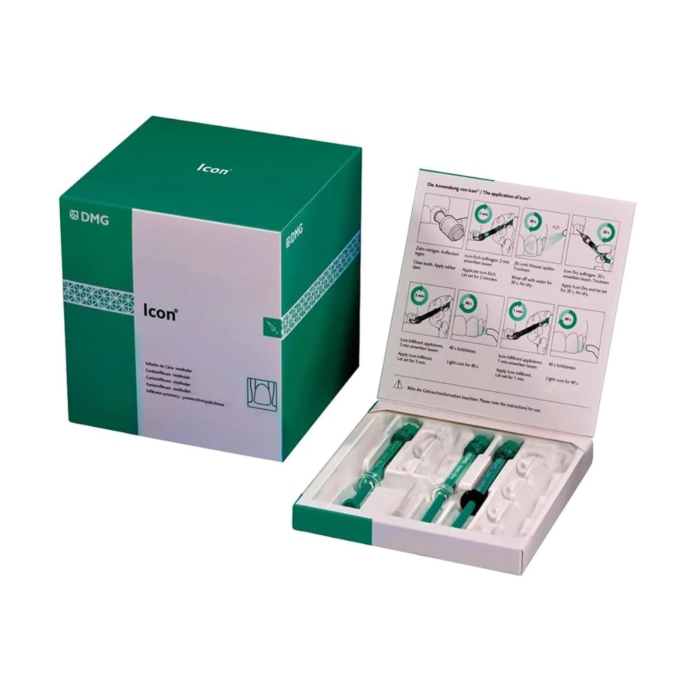 - Includes 2 patient packs: syringes of Icon-Etch, Icon-Dry, Icon-Infiltrant, and 6 smooth surface tips.