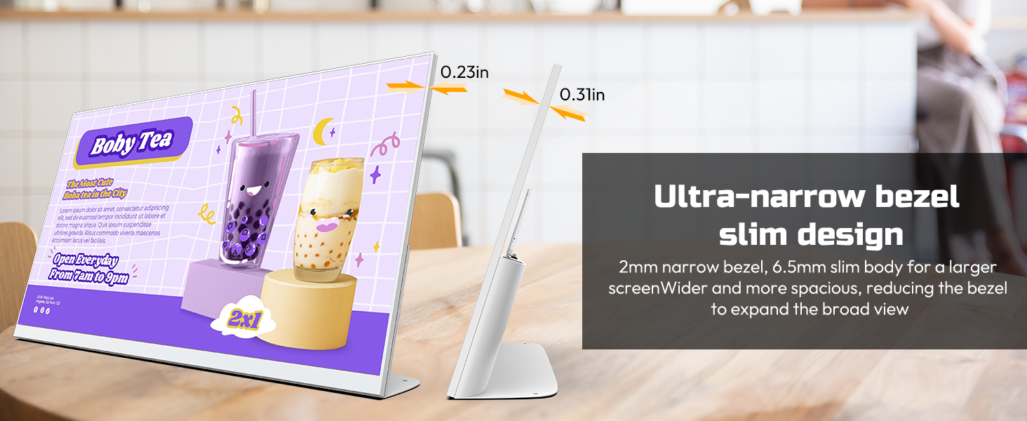 【حجم سطح المكتب 24 بوصة للاستخدام التجاري】تصميم سطح المكتب 24 بوصة يناسب متاجر شاي الحليب والمطاعم ومتاجر البيع بالتجزئة بشكل مثالي. إنه يوفر مساحة على المنضدة، ويمكن وضعه على عدادات الطلب/مكاتب الاستقبال، مما يتيح للعملاء عرض القوائم والعروض الترويجية بوضوح، مما يحسن كفاءة الطلب.