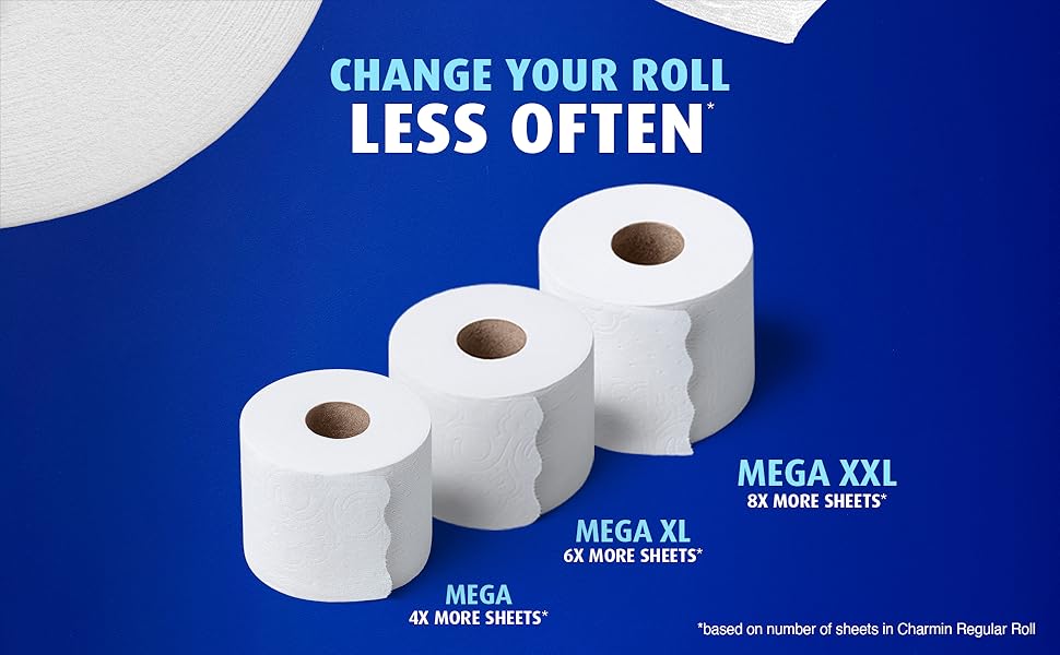 Get irresistible softness with Charmin Ultra Soft Smooth Tear™ toilet paper. Every roll is crafted with wavy edges that tear so much better vs. the leading USA 1-ply bargain brand, so you can have a smooth, more enjoyable go. And each sheet of Charmin Ultra Soft Smooth Tear toilet paper is 2X more absorbent vs. the leading USA 1-ply bargain brand, so you can use less! We made it MEGA in size, so you get MEGA value. 1 Charmin Ultra Soft Mega Roll equals 4 Regular Rolls, so you can change the roll less often based on the number of sheets in Charmin Regular Roll. Want to save even more time by running back to the store less? Stock up on Charmin toilet paper with our larger count packs! Charmin Ultra Soft Smooth Tear™ is also 2-ply and designed to be clog-safe and septic-safe. We all go, why not Enjoy The Go with America's favorite toilet paper, based on Total Charmin Brand Sales (Nielsen 2024 Dollar Sales)