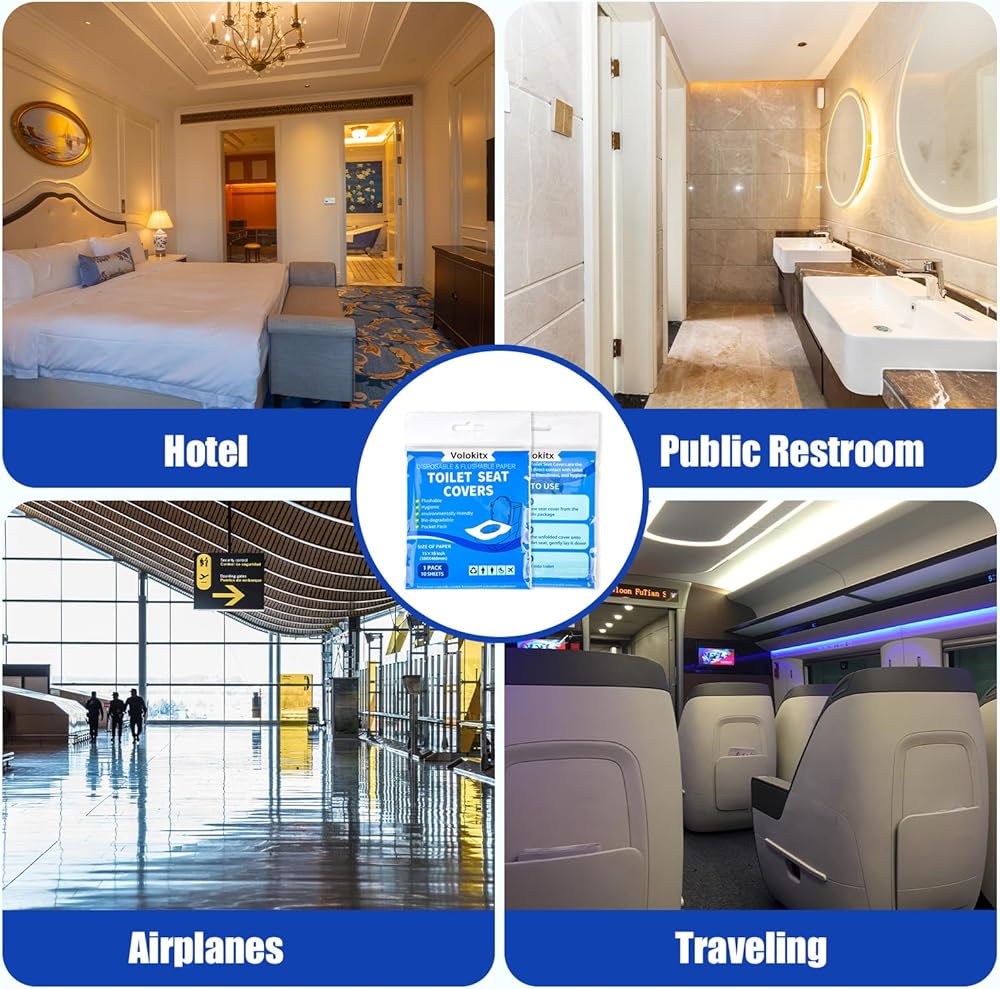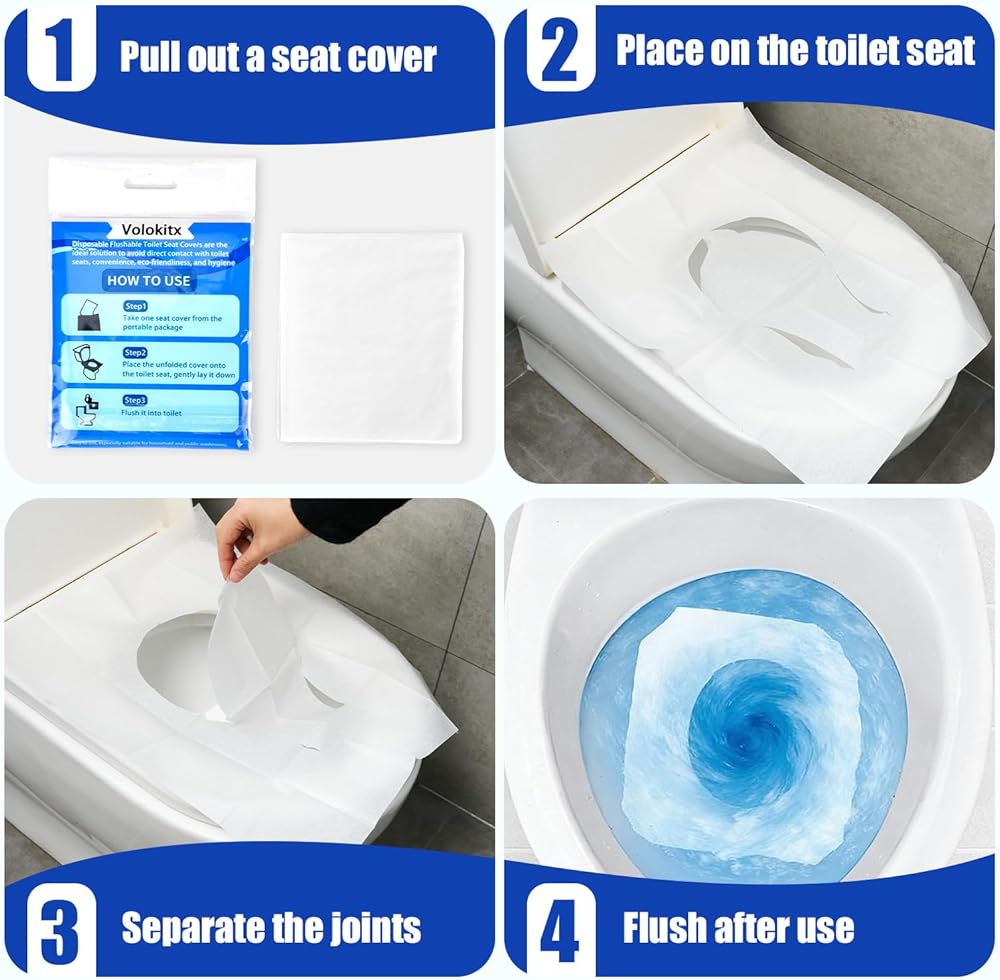 【استخدام متعدد الاستخدامات】: مع 120 غطاء يمكن التخلص منه إجمالاً، يمكنك الاحتفاظ ببعضها في سيارتك أو حقيبة الظهر أو محفظتك من أجل الراحة أثناء التنقل. مثالي للعائلات المشغولة أو المسافرين المتكررين أو أي شخص يريد حماية صحية للحمام في أي وقت وفي أي مكان.
