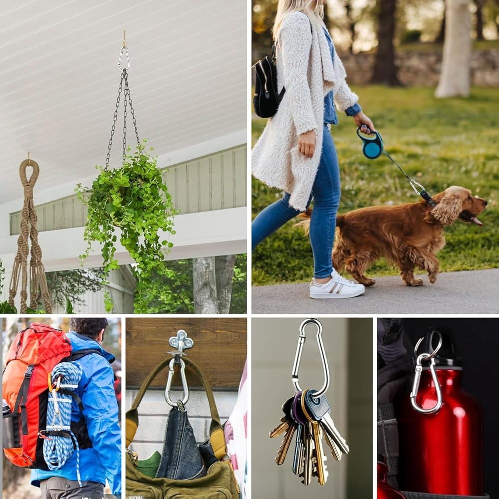 24 قطعة M5 حلقات تسلق صغيرة زنبركية، خطافات فولاذية مجلفنة 1.97 بوصة للتخييم والصيد وإكسسوارات السفر