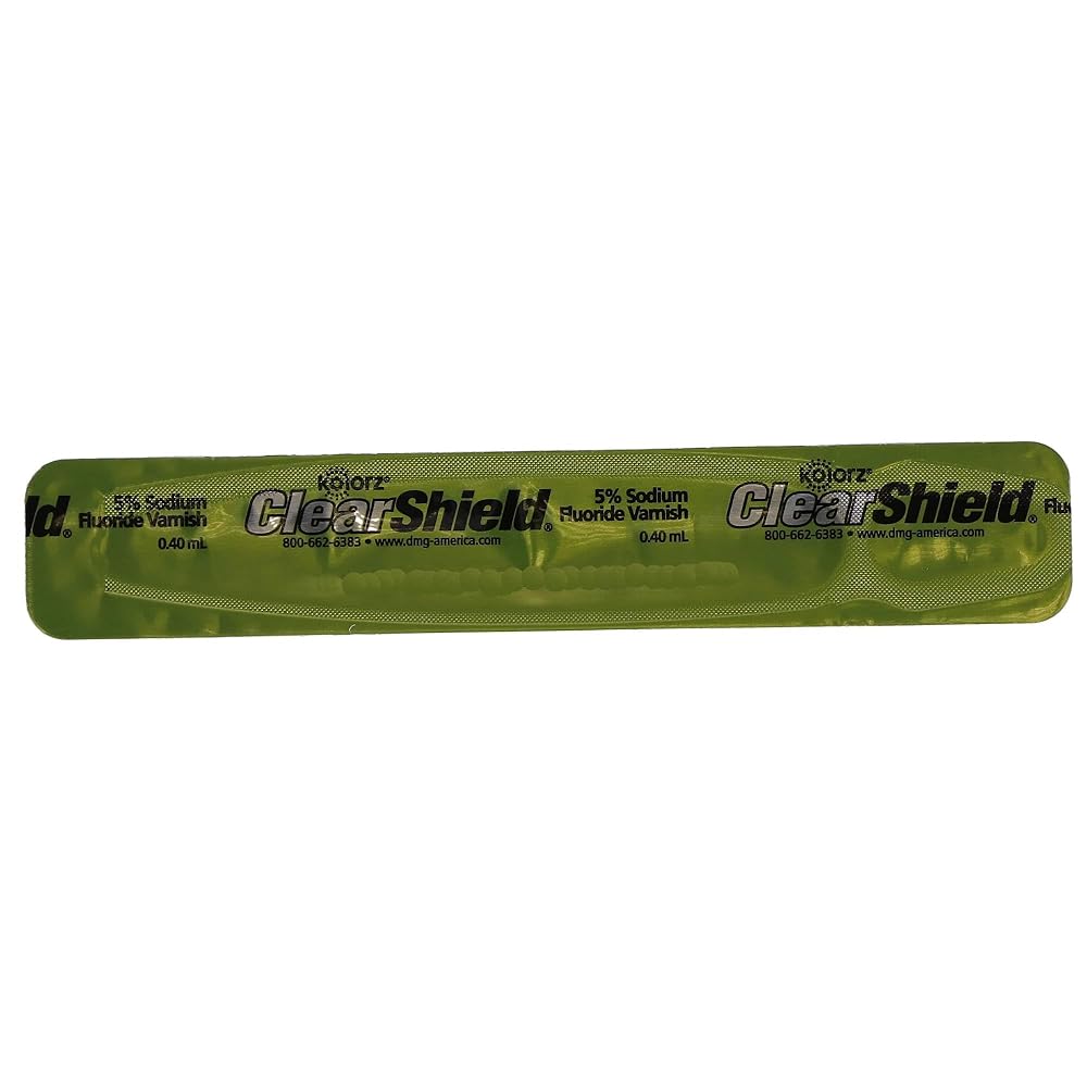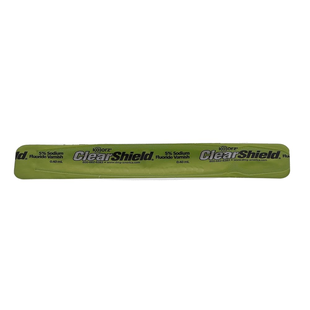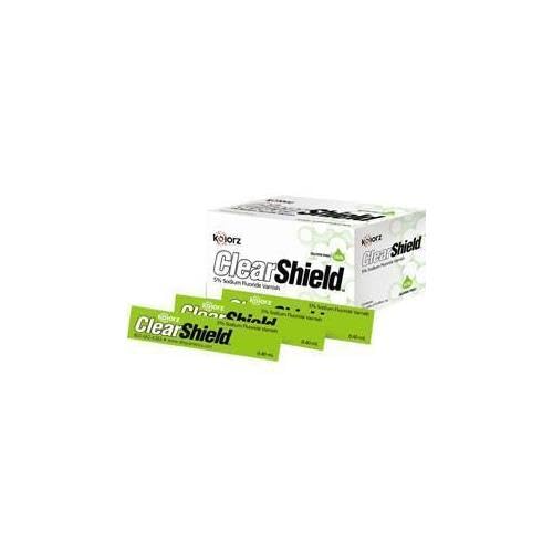 Kolorz ClearShield Varnish - Watermelon 35/Pk. Fluoride Varnish goes on clear, with no embarrassing discoloration. Long-Lasting Relief from Dental Hypersensitivity, Contains Xylitol, Saccharin-free, Gluten-free. Box of 35 - 0.40 mL unit doses.