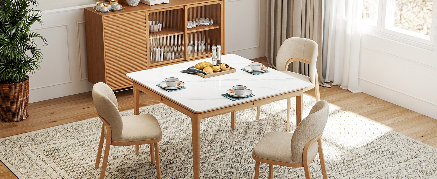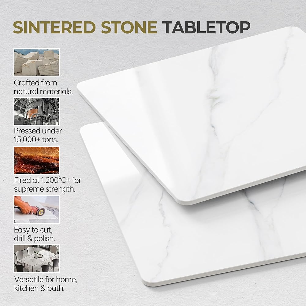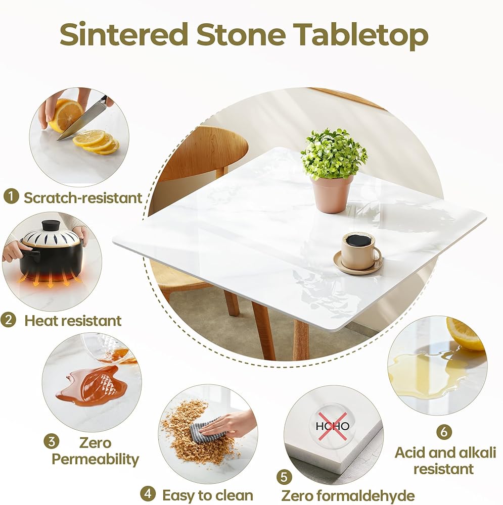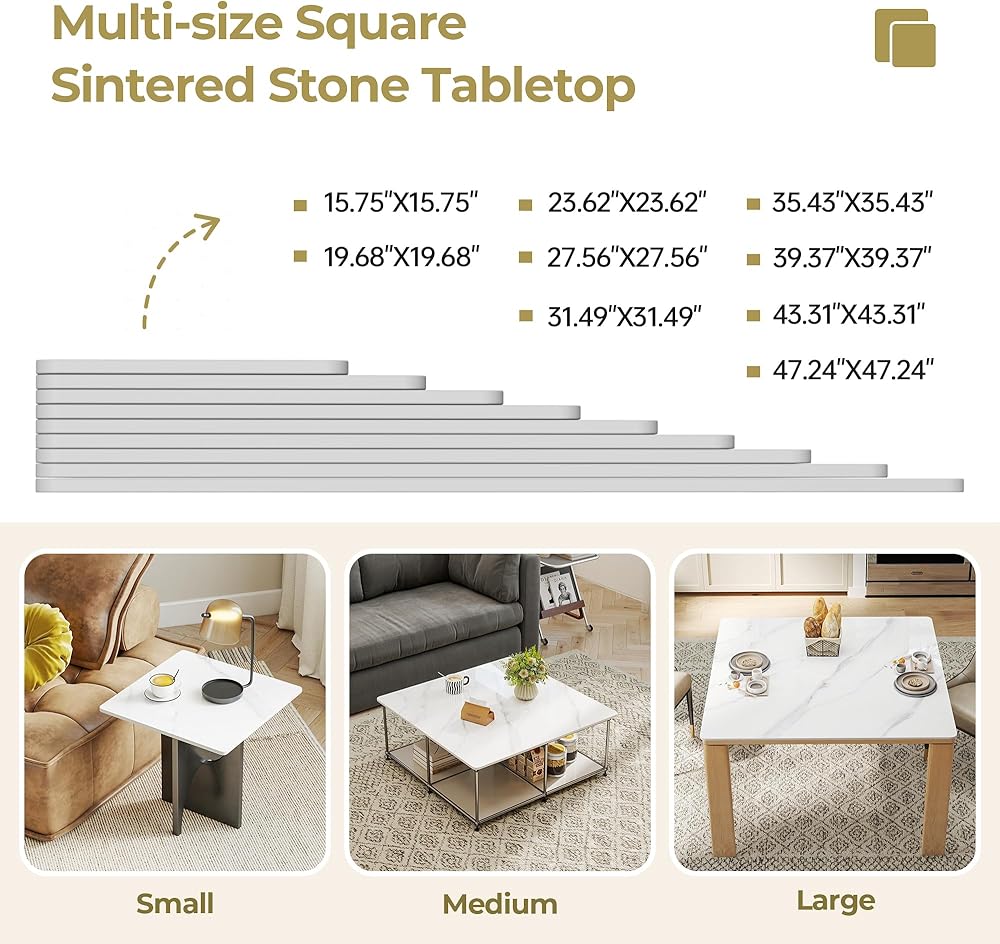 【الخامة: مصنوعة من الحجر الملبد، سطح الطاولة المربع هذا يتفوق في مقاومة الخدش والتآكل. يمكنه بسهولة تحمل التآكل الناتج عن العناصر اليومية مثل المفاتيح وأدوات المائدة. علاوة على ذلك، فإن سطحه الأملس وغير المسامي يجعل التنظيف أمرًا سهلاً. مجرد مسح سريع بقطعة قماش مبللة يكفي لإزالة البقع والانسكابات والأوساخ، مما يحافظ على سطح الطاولة بمظهر أصلي بأقل جهد.
