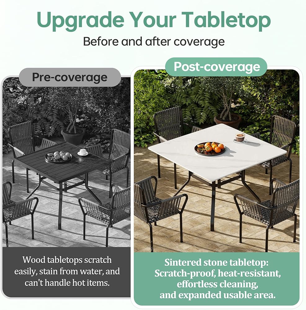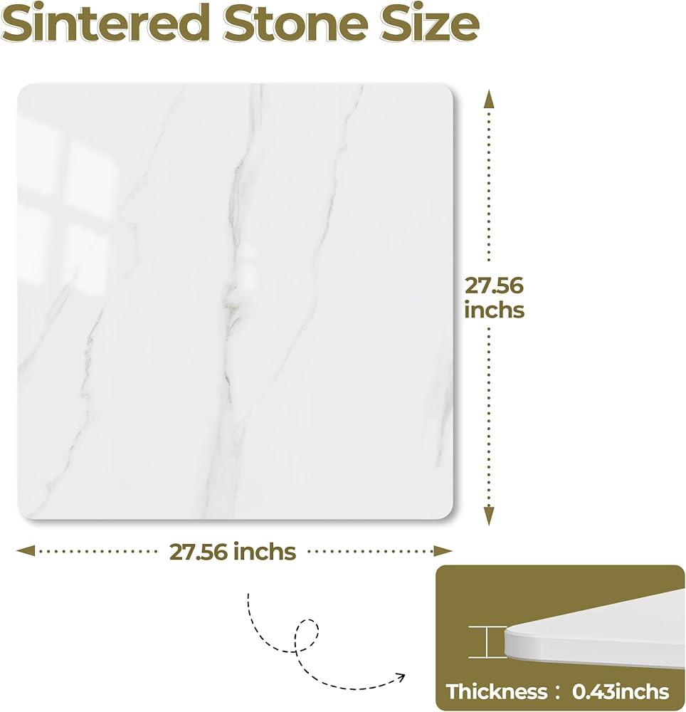 سطح طاولة مربع، سطح طاولة من الحجر الأبيض الملبد مقاس 27.5 سم، استبدال وغطاء سطح المكتب من الرخام بنفسك، مقاوم للخدش والاهتراء، مناسب للاستخدام الداخلي والخارجي