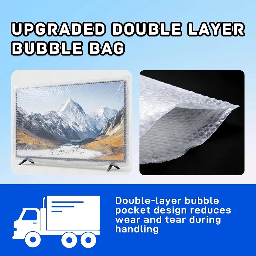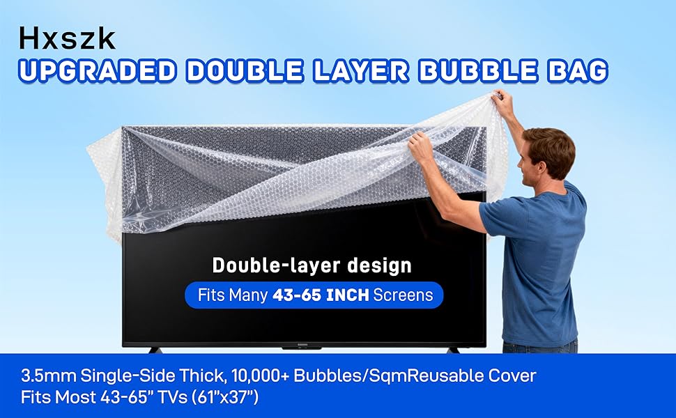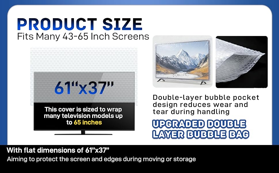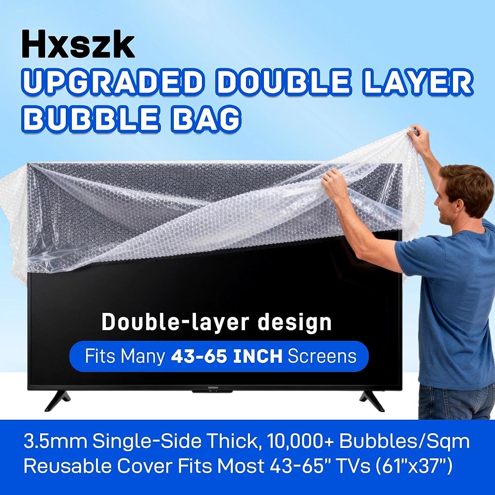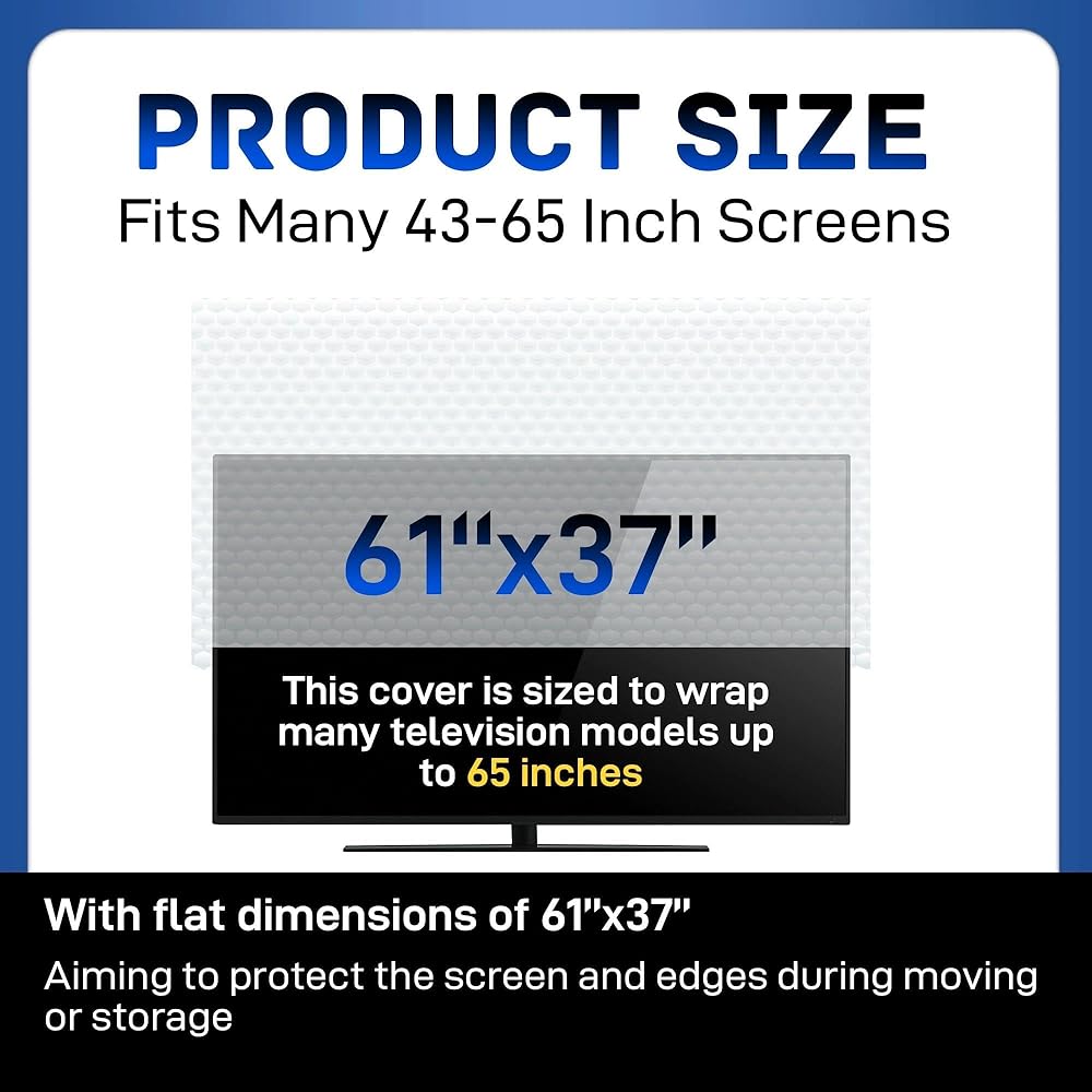 صندوق نقل التلفزيون مقاس 65 بوصة، حقيبة فقاعات مزدوجة الطبقة مطورة للتنقل - سمك جانب واحد 3.5 ملم، أكثر من 10000 فقاعات/متر مربع، غطاء قابل لإعادة الاستخدام يناسب معظم أجهزة التلفاز مقاس 43-65 بوصة (61 بوصة × 37 بوصة)