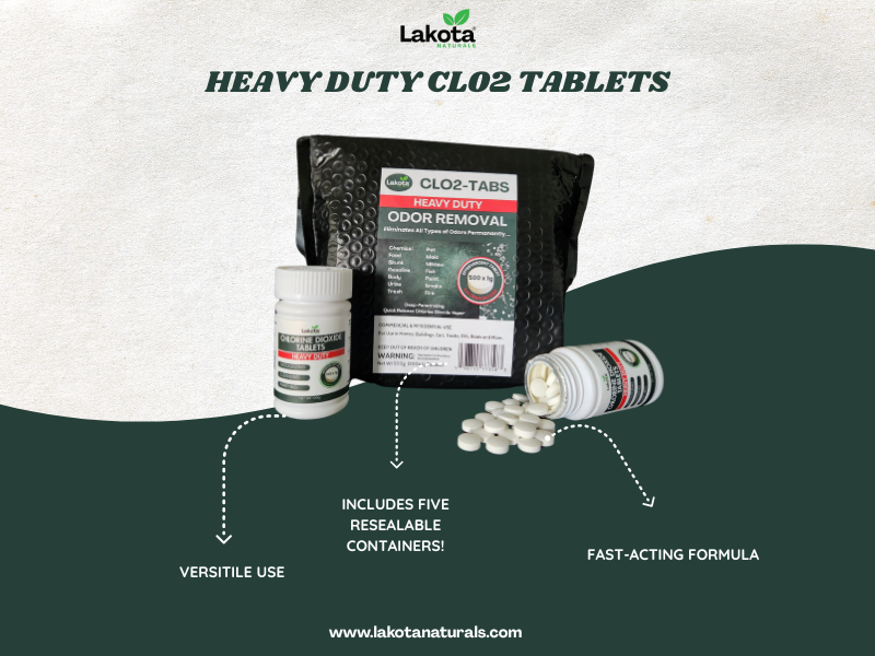 إصدار سريع - تبدأ أقراص ثاني أكسيد الكلور CLo2Tabs في العمل على الفور للقضاء على أي روائح تسببها الحيوانات الأليفة والطعام والزيوت والدخان والمزيد.