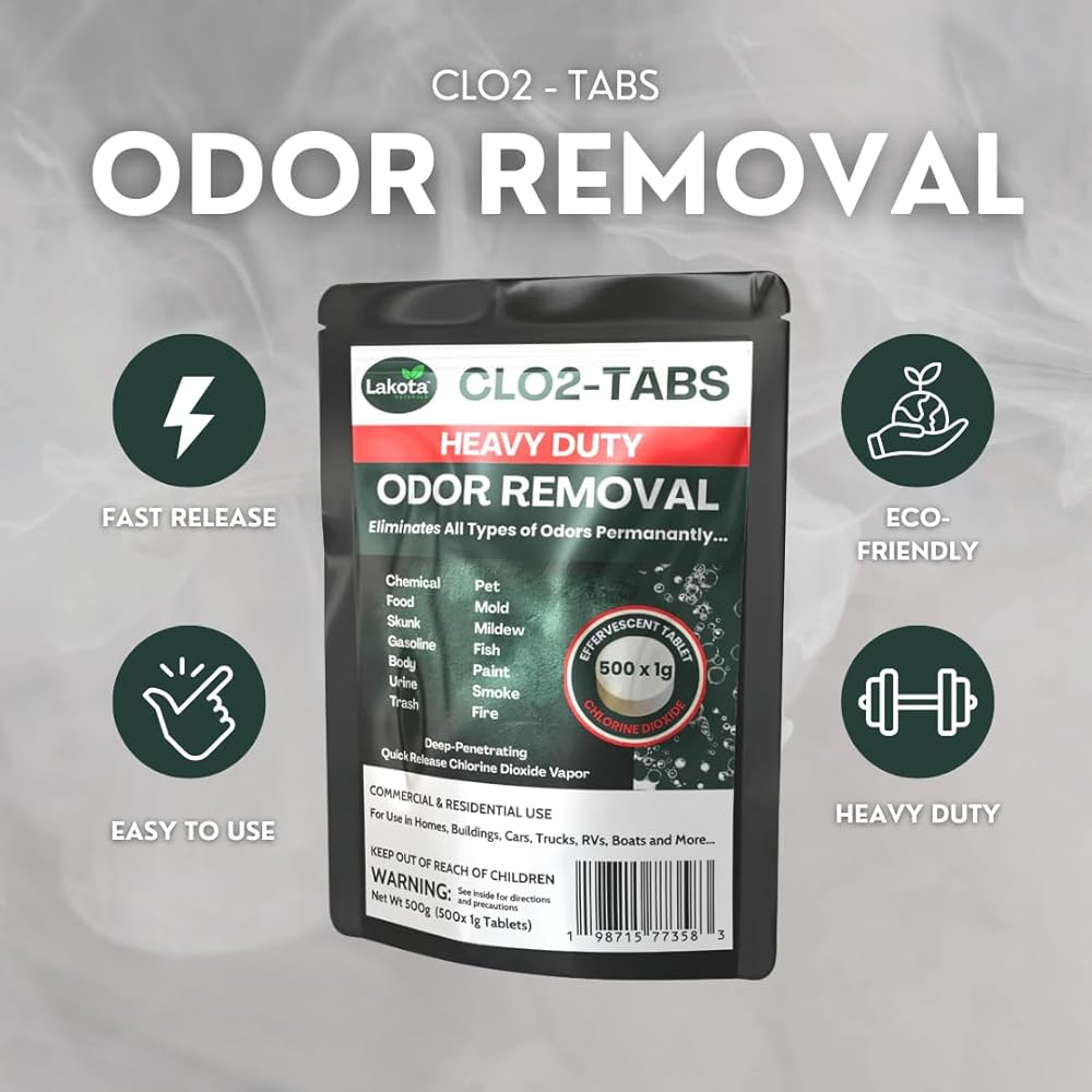 أقراص ثاني أكسيد الكلور CLO2-ODOR - 500 × 1 جرام (1.1 رطل) أفضل قيمة! إزالة رائحة ثاني أكسيد الكلور شديدة التحمل للمنازل والغرف والسيارات والشاحنات والمركبات الترفيهية والمركبات والمباني والمزيد!
