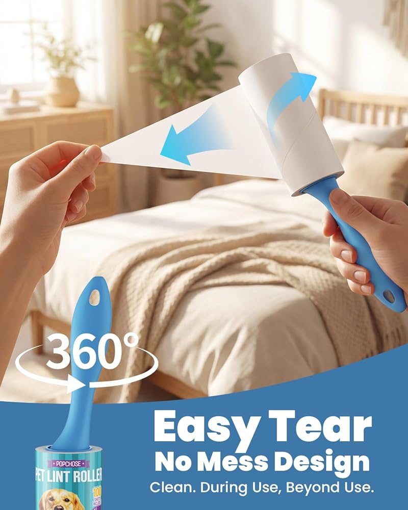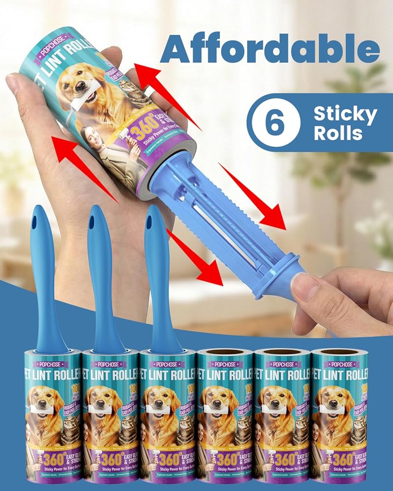لزج للغاية وفعال – هل سئمت من التصاق شعر الحيوانات الأليفة بكل شيء؟ تتميز بكرات الوبر الخاصة بشعر الحيوانات الأليفة بمادة لاصقة قوية التركيب وفائقة الالتصاق مصممة خصيصًا لرفع شعر الكلاب العنيد وشعر القطط والوبر والغبار من الأقمشة بتمريرة واحدة. يعمل بسهولة على الملابس والأثاث ومقاعد السيارة.