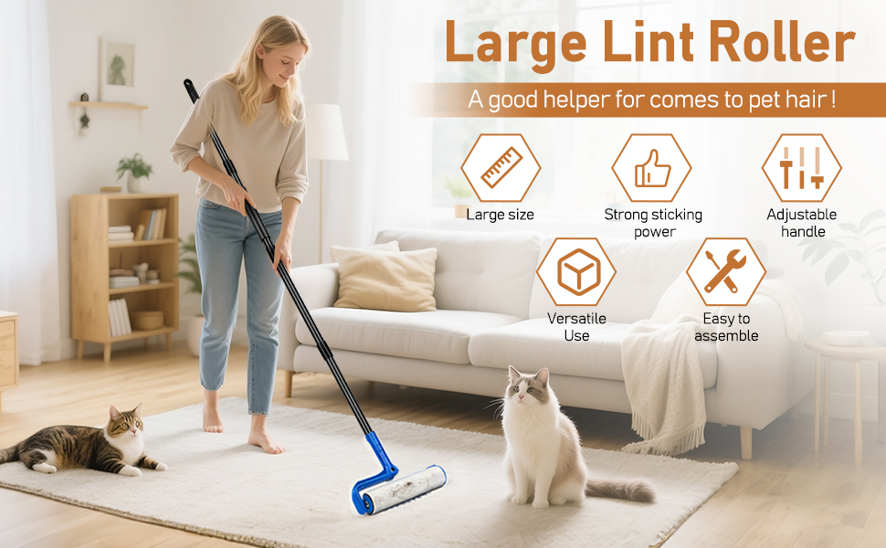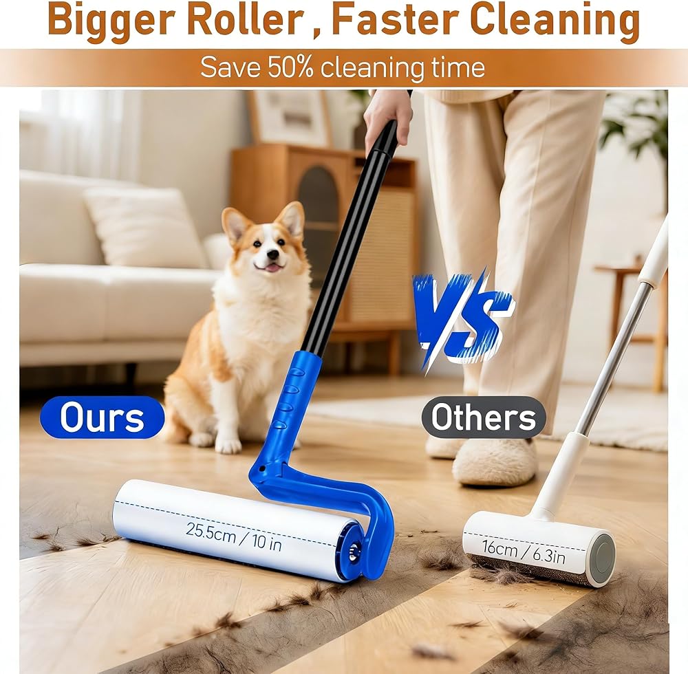 • 🌪 أسطوانة ضخمة مقاس 10 بوصات: احصل على تغطية أكبر بنسبة 50% من الأسطوانات القياسية! يتعامل سطح أسطوانة الوبر العملاق لدينا مع شعر الحيوانات الأليفة والغبار والوبر من الأرضيات والسجاد والأرائك في ثوانٍ. مثالية للفوضى الكبيرة!