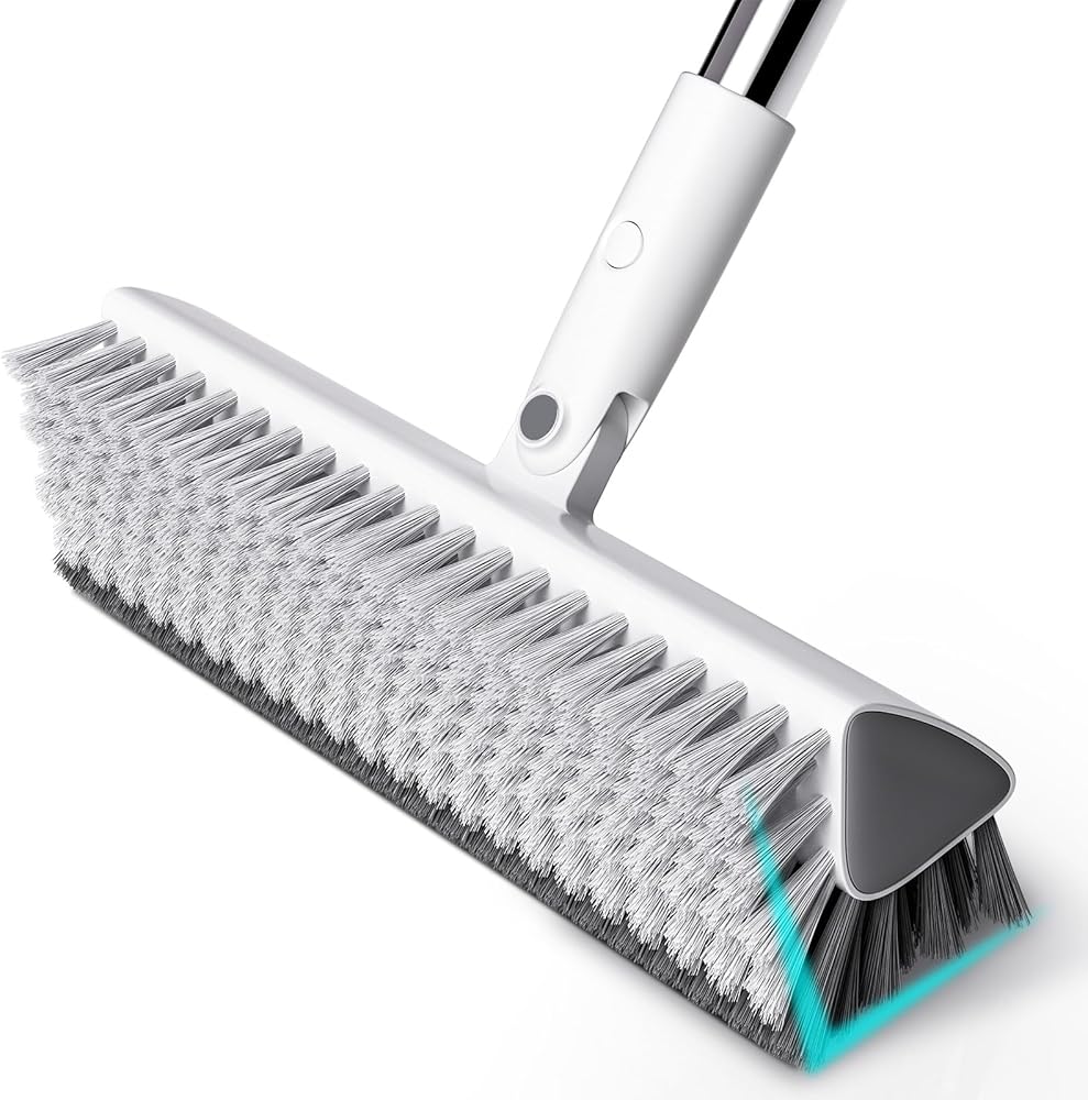 فرشاة تنظيف الأرضيات بمقبض طويل، شعيرات قوية شديدة التحمل، فرشاة تنظيف الأرضيات على شكل حرف V للبلاط والخرسانة وخطوط الجص، تنظيف قائم للمرآب والحمام والسطح والفناء