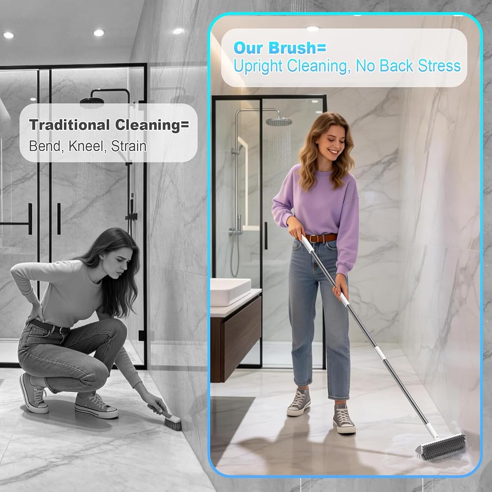 التنظيف أثناء الوقوف - لا يلزم الانحناء أو الركوع__ يتيح لك المقبض الطويل تنظيف الأرضيات أثناء الوقوف بشكل مستقيم، مما يقلل الضغط على ظهرك وركبتيك أثناء مهام التنظيف الثقيلة. فعال للمناطق الكبيرة مثل المرائب والباحات وأسطح حمامات السباحة وورش العمل والمداخل.