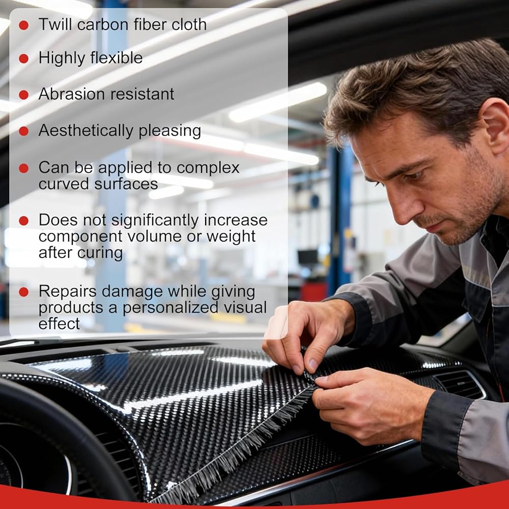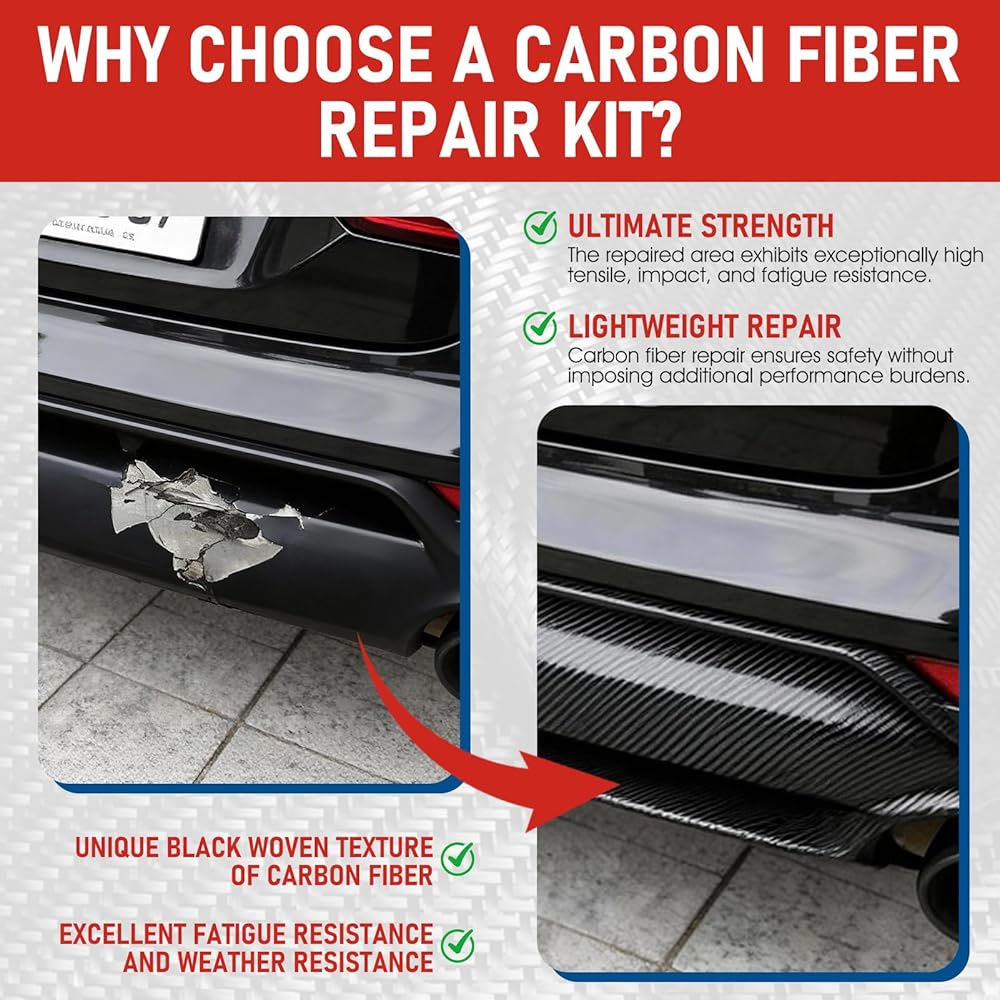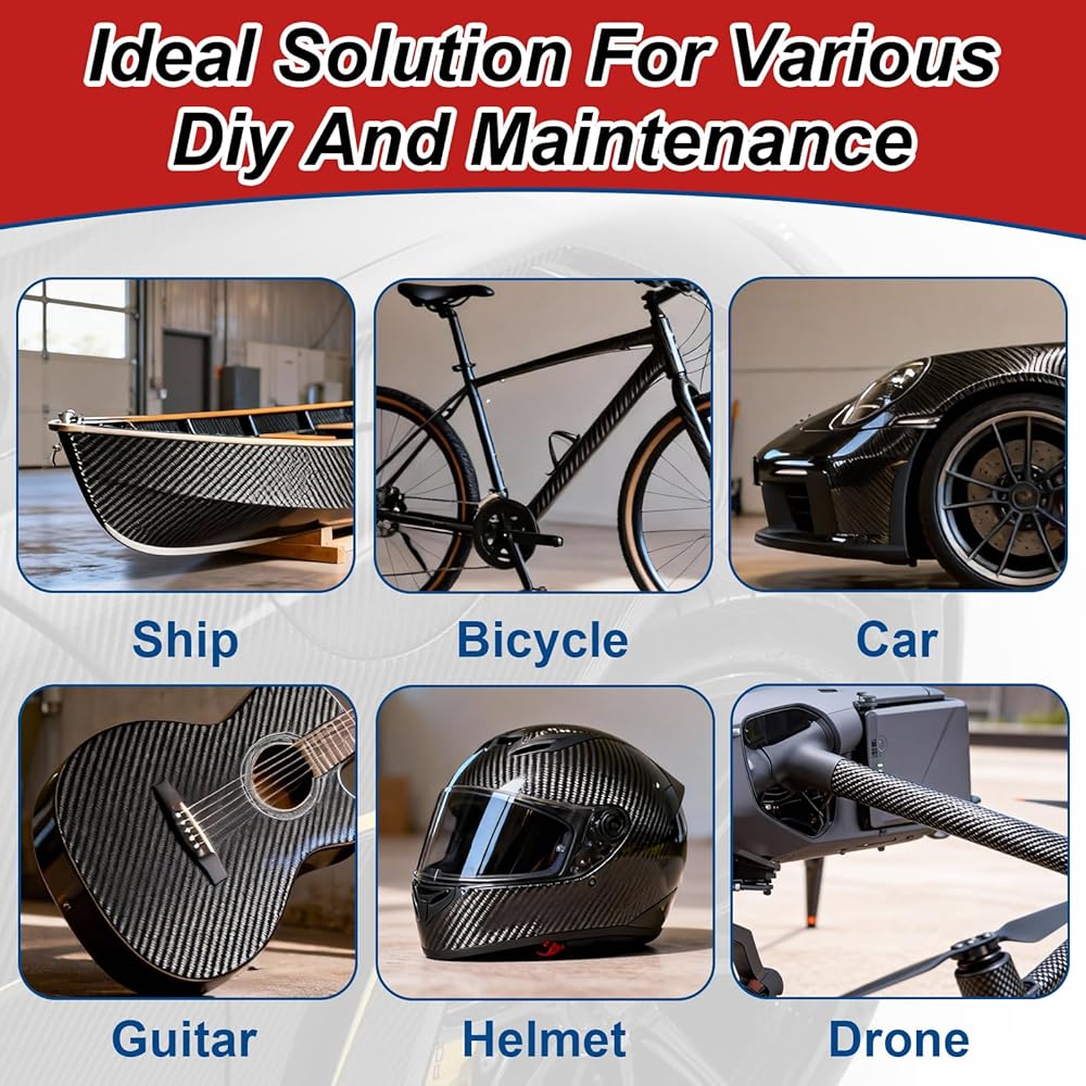 مجموعة متعددة الاستخدامات: مجموعة ألياف الكربون مع الراتنج مثالية لإصلاح الأدوات المنزلية والمكونات وقطع غيار السيارات. من المشاريع اليدوية إلى مهام الصيانة، توفر هذه المجموعة التنوع والمتانة لإصلاحات قوية تدوم طويلاً