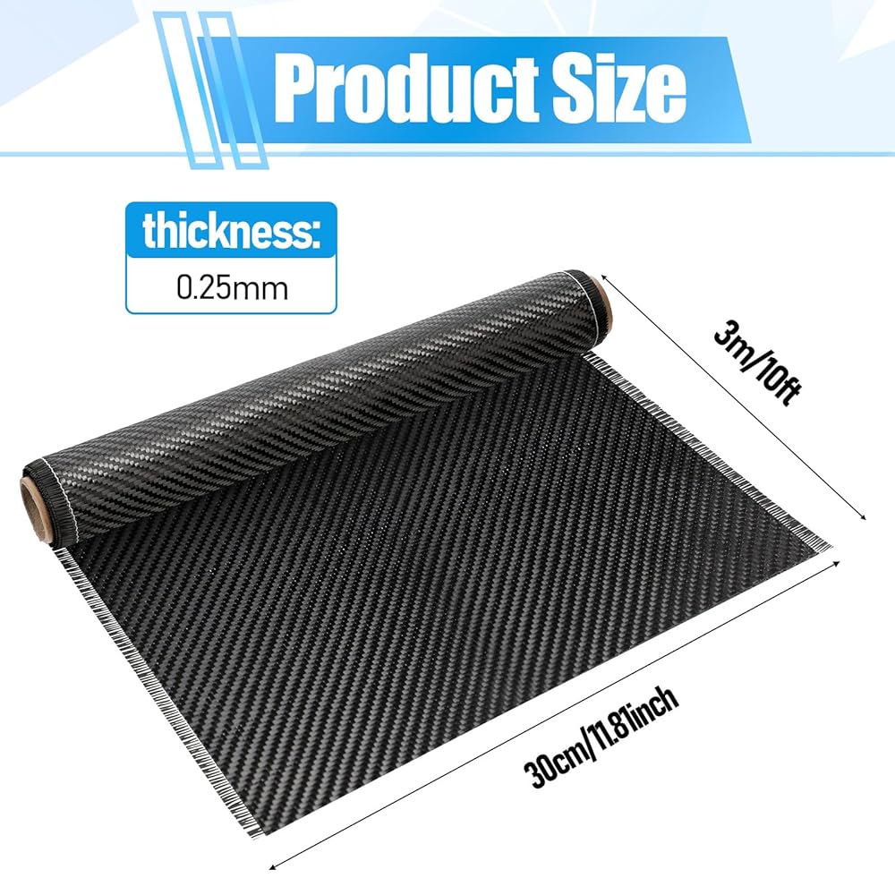 Package Contents: 1 roll 10ft x 12inch carbon fiber fabric