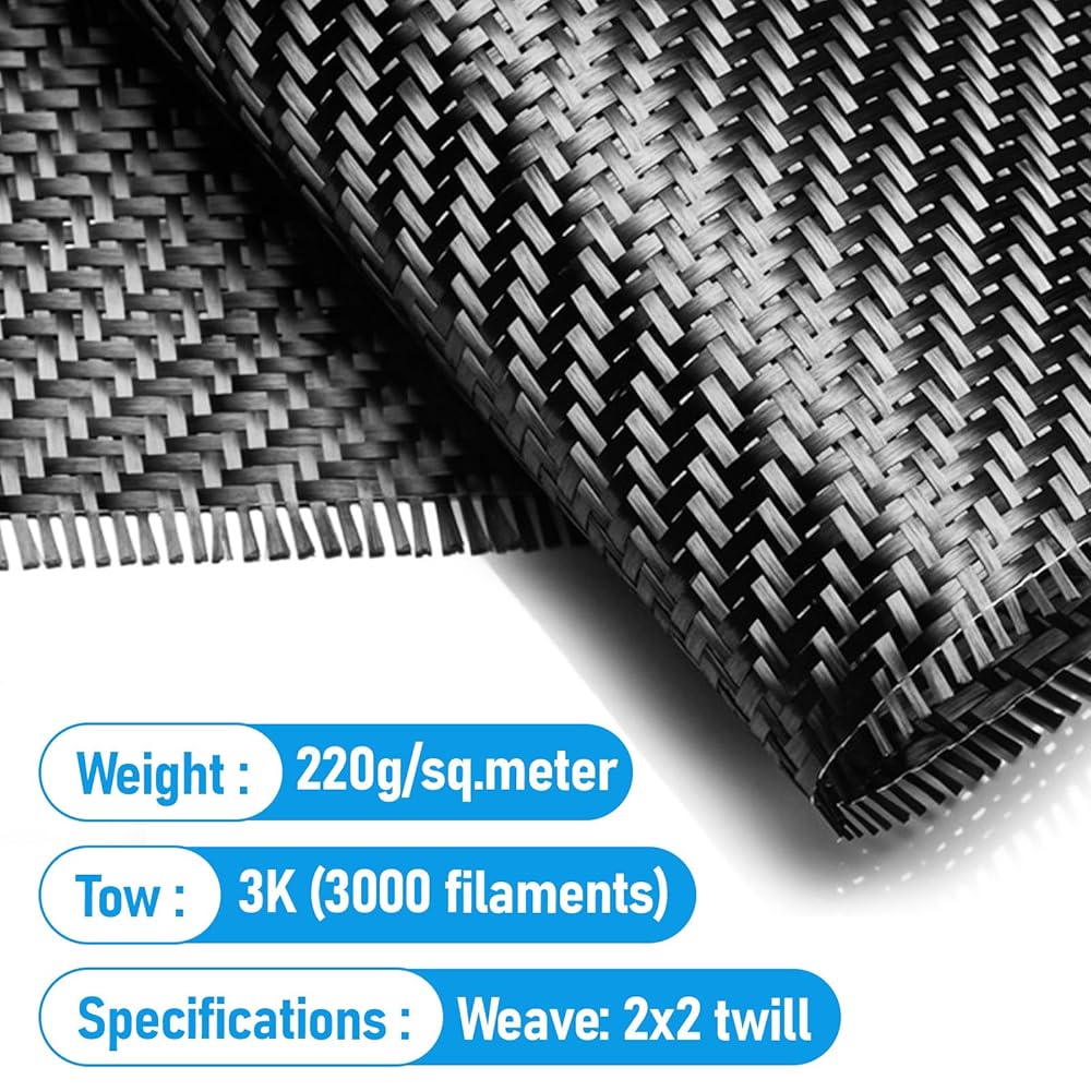Well Made: This carbon fiber roll adopts 2 x 2 twill weave, weighing 220 g/square meter, adopts 3000 long filaments, solid and serviceable, practical and serviceable, compact and easy to handle, ideal for small to medium repairs, modeling, and reinforcement projects.