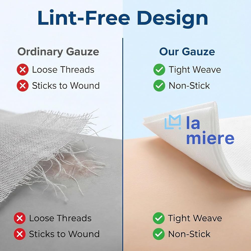 Non Stick:LE UNIMEDY medical gauze pads are latex-free and lint-free. It does not stick to the wound and keeps it clean