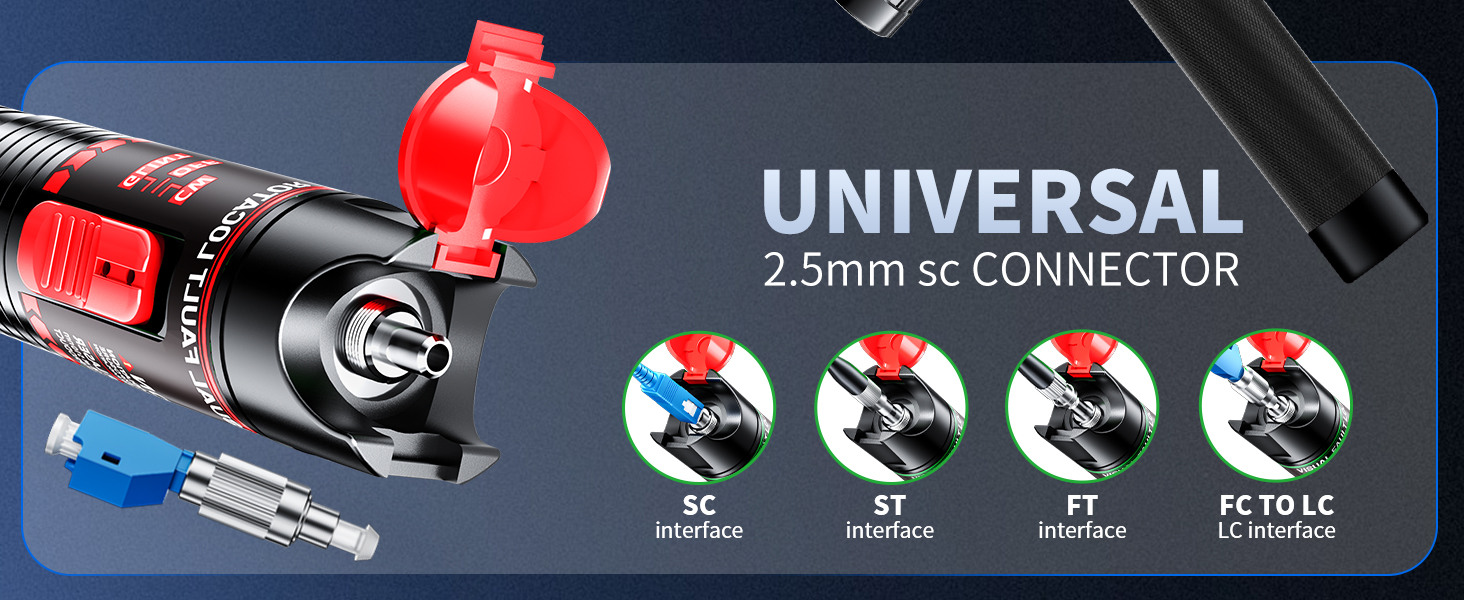 【𝐏𝐢𝐧𝐩𝐨𝐢𝐧𝐭 𝐅𝐚𝐮𝐥𝐭𝐬 𝐢𝐧 𝐒𝐞𝐜𝐨𝐧𝐝𝐬】 حدد موقع فواصل الألياف أو الوصلات الضعيفة أو الانحناءات أو الشقوق بدقة باستخدام ليزر أحمر عالي الكثافة 650 نانومتر. تصبح الأخطاء مرئية على الفور عندما ينكسر الضوء عند نقاط المشكلة، مما يسهل عملية استكشاف الأخطاء وإصلاحها