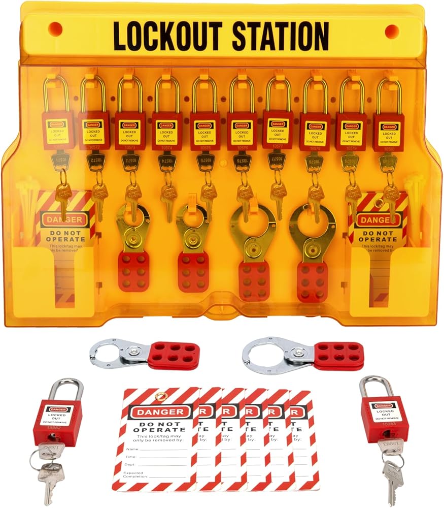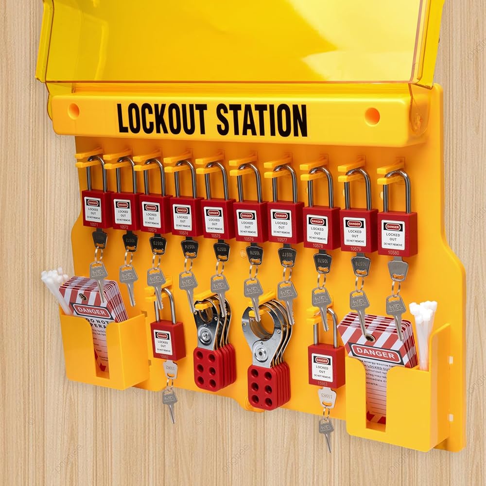 • محطة أمان عالية الوضوح: لوحة حائط ذات قفل أصفر فلورسنت مع فتحات تثبيت مثقوبة مسبقًا، يتم تركيبها بشكل صارم بالقرب من الآلات لسهولة الوصول المتوافقة مع OSHA والتحكم الفوري في المعدات