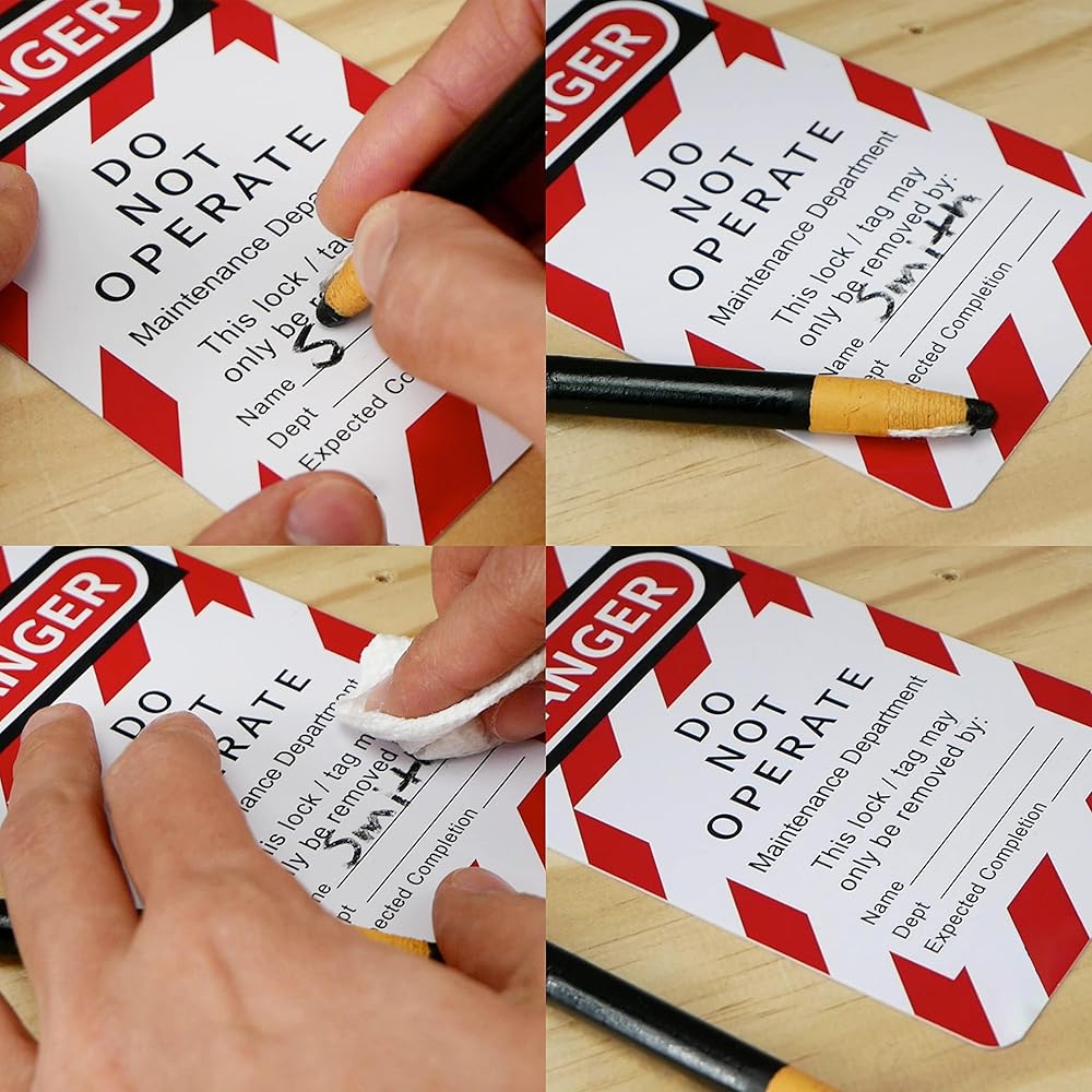 • علامات وربطات Loto: 30 قطعة 32 مل من الفينيل PVC المقاوم للطقس لا تعمل على الملصقات، تم وضع علامة عليها بسلاسة باستخدام قلم تحديد دائم أو قلم رصاص قائم على الشمع/الزيت؛ 30 ربطة كابل مرنة من النايلون