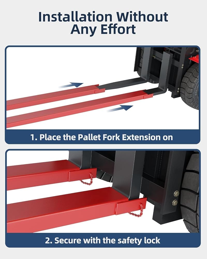 • 【Effortless Installation】 Designed for a tool-free installation,Easily install fork extensions; Simply slide the extension onto the Forklift to start working.