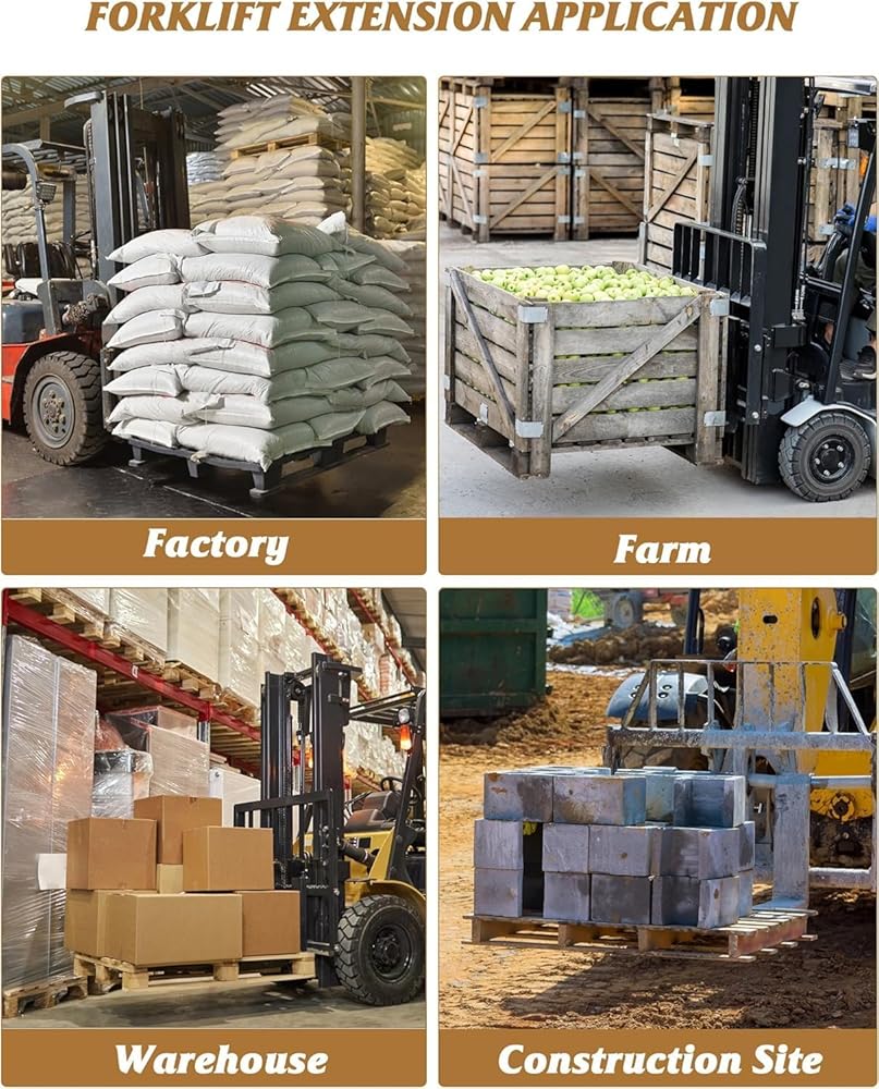 • 【Excellent design】Our fork extensions feature seamless one-piece welding for enhanced structural stability and durability.Our fork extensions are designed specifically for Forklift and will fit like gloves.Plus, they're coated with a sleek powder finish to fight off rust.