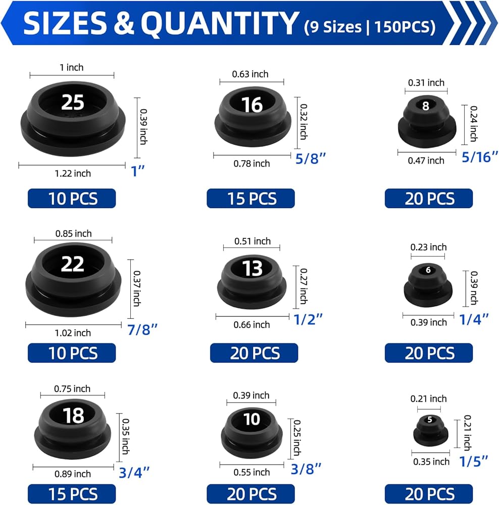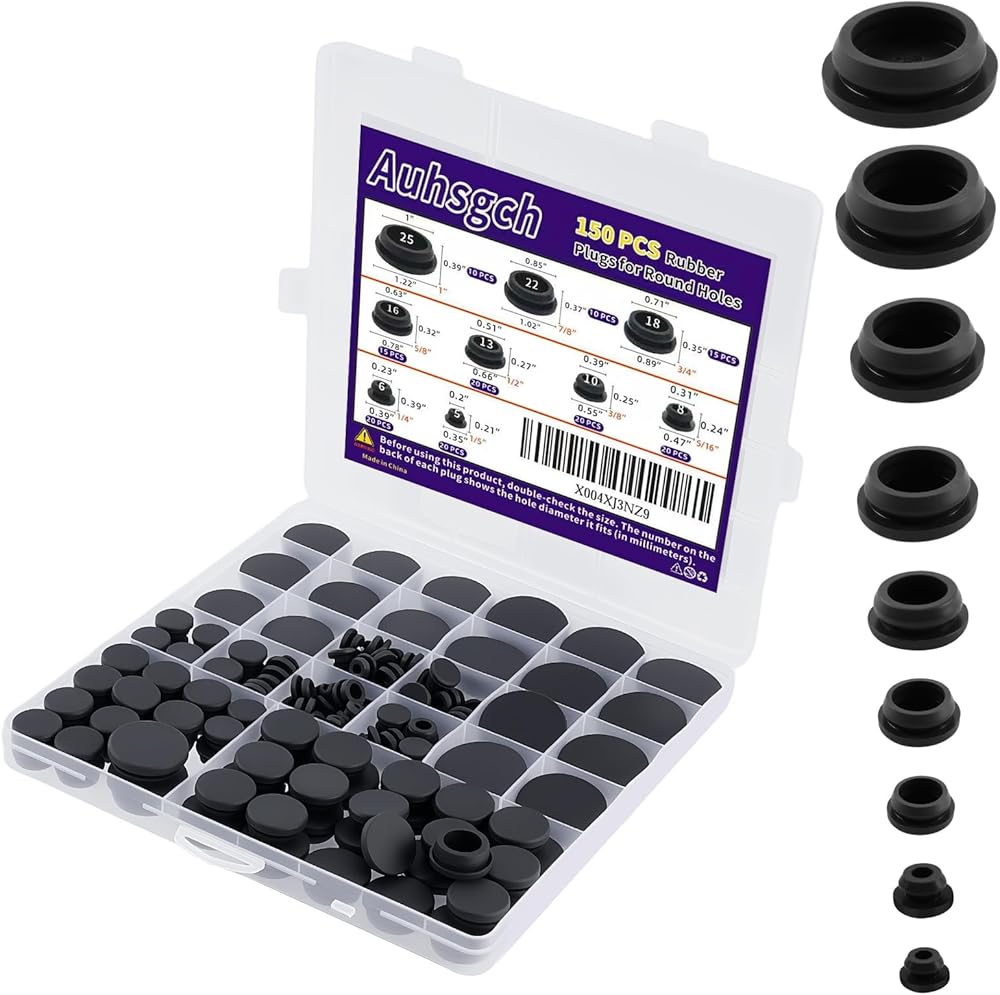 【مجموعة كاملة مكونة من 9 مقاسات】 تشتمل سدادات الفتحات المطاطية على 150 سدادة سيليكون سوداء في 9 أحجام دقيقة (1/5 بوصة، 1/4 بوصة، 5/16 بوصة، 3/8 بوصة، 1/2 بوصة، 5/8 بوصة، 3/4 بوصة، 7/8 بوصة، 1 بوصة) - أحجام أكثر من مجموعات مقاسات معظم المنافسين 7-8. مثالية لإغلاق الثقوب المستديرة على الأثاث وقطع غيار السيارات والأنابيب وجميع مشاريع الأعمال اليدوية الخاصة بك. كل قابس مطاطي واضح تم تصنيفها في صندوق التخزين المنظم للاختيار السريع والفوري.