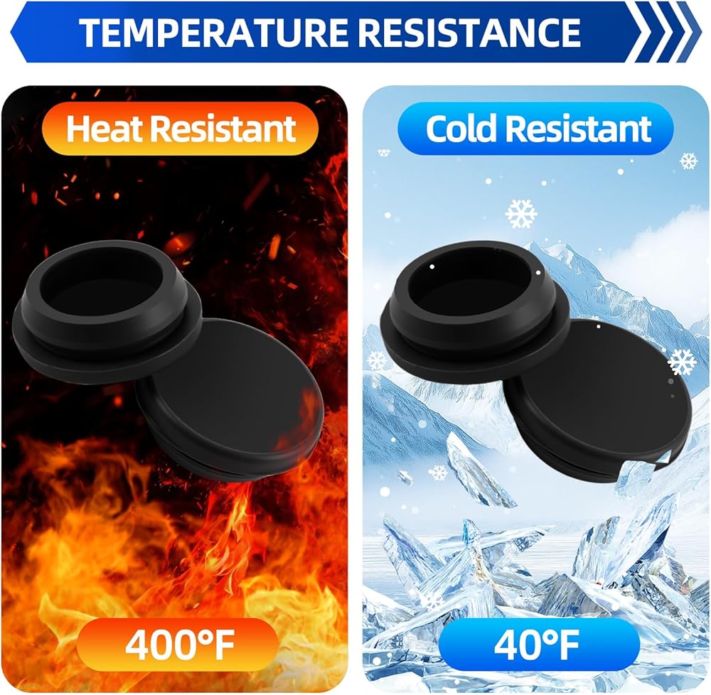 【مادة سيليكون ممتازة】 جميع سدادات الفتحات المطاطية للثقوب المستديرة مصنوعة من سيليكون عالي المرونة وعديم الرائحة - يتحمل درجات الحرارة القصوى (-40 درجة فهرنهايت إلى 400 درجة فهرنهايت)، والتآكل والشيخوخة. أكثر نعومة من المطاط العادي، هذه المقابس المصنوعة من السيليكون للفتحات الدائرية لن تتشقق أو تتصلب بمرور الوقت، مما يضمن إغلاقًا مقاومًا للماء يدوم طويلاً.
