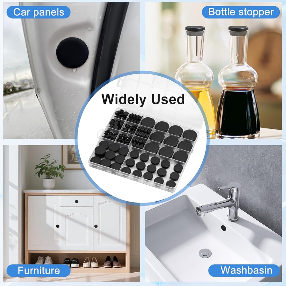 تستخدم على نطاق واسع: يمكن استخدام سدادات الفتحات المطاطية هذه للفتحات الدائرية لإخفاء أو تغطية الثقوب، وهي مناسبة للأثاث والخزائن والطاولات والكراسي والسيارات والمشروعات التي تصنعها بنفسك والمزيد.