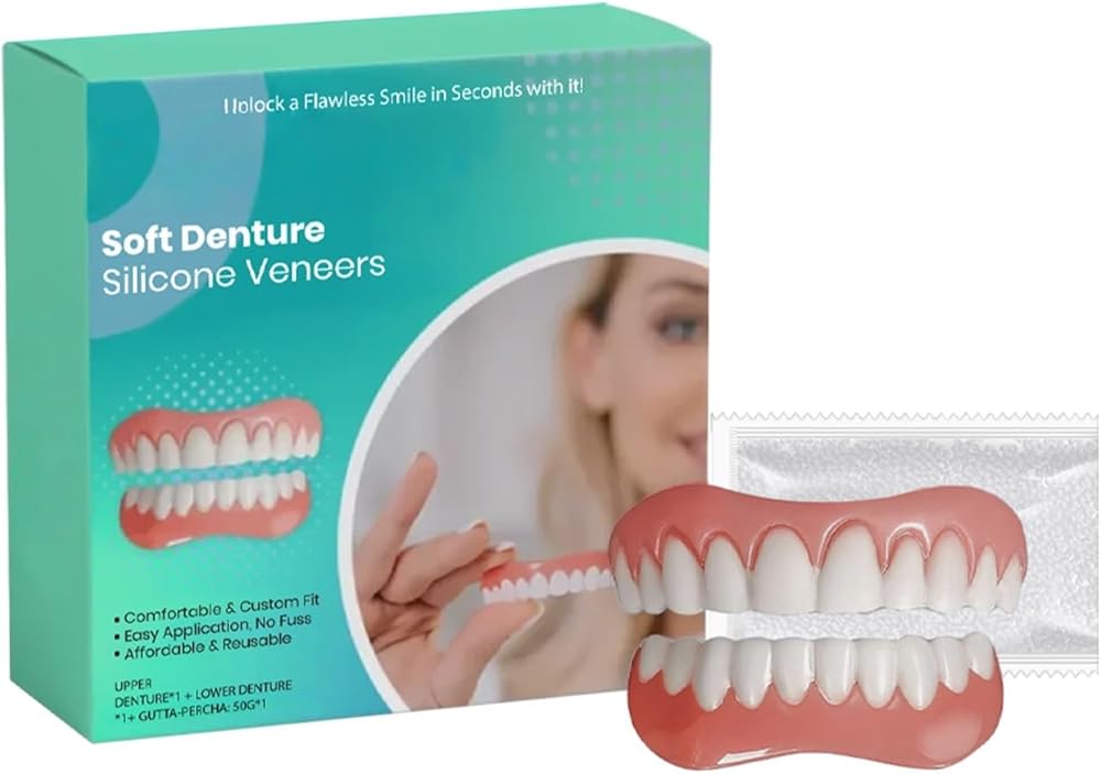 Transform your smile instantly with these soft denture silicone veneers, designed to enhance your appearance and boost your confidence. This cosmetic teeth solution offers both upper and lower denture sets that are comfortable to wear and easy to apply. The veneers are crafted from flexible materials including polyvinyl alcohol crosslinked polymer and sodium polyacrylate, providing a natural look while being gentle on your gums. These reusable smile enhancers effectively cover dental imperfections, fill gaps between teeth, and create the appearance of a fuller, more attractive smile. Application is straightforward: simply soften the fitting material until pliable, then carefully mold the veneers to fit your teeth for a custom, secure fit. The material resists staining and is easy to keep clean with regular care. Perfect for special occasions, photos, or everyday wear when you want to present your best smile. These temporary cosmetic teeth allow you to smile boldly and confidently without expensive dental procedures. The affordable and reusable design makes it a practical solution for anyone looking to improve their dental appearance quickly and conveniently.