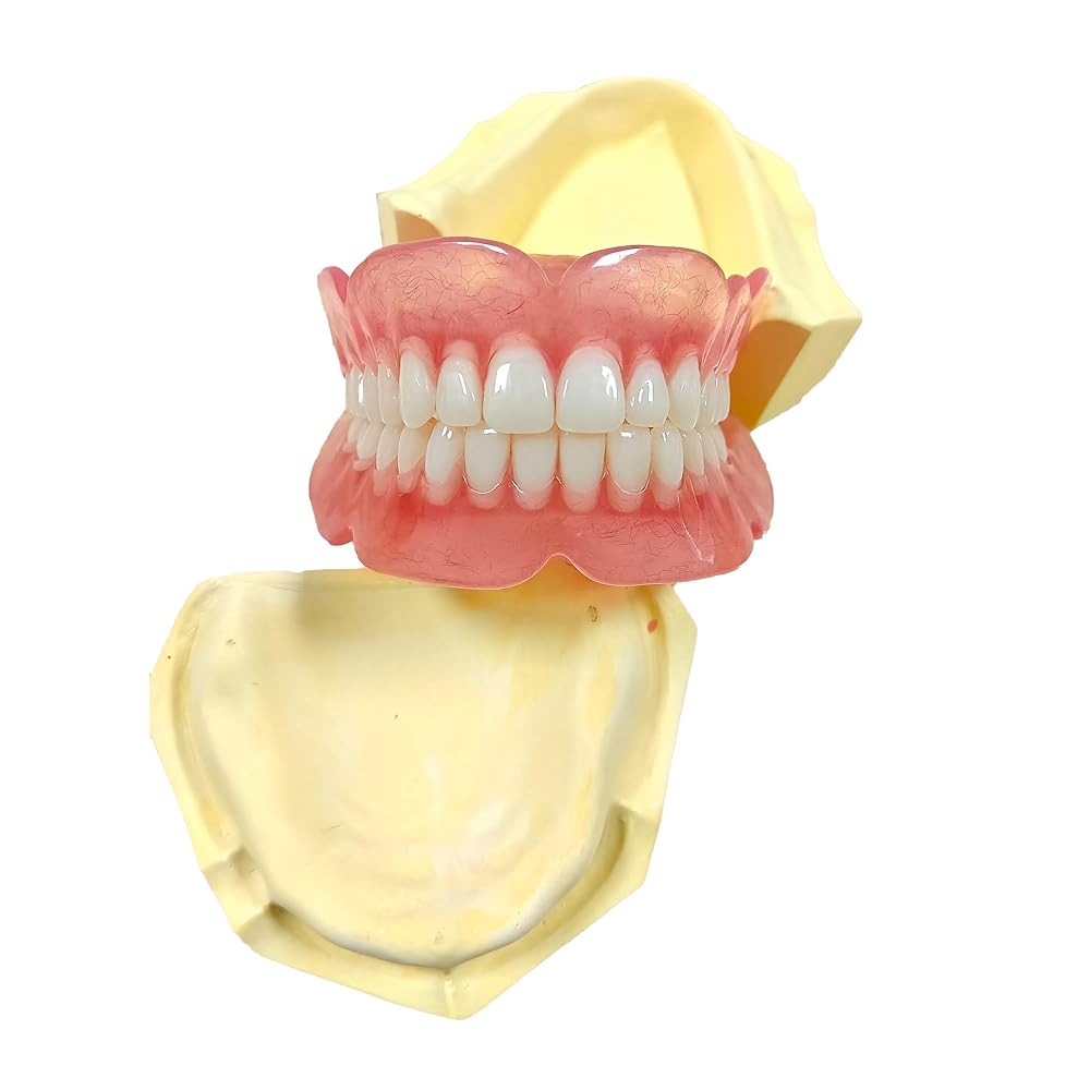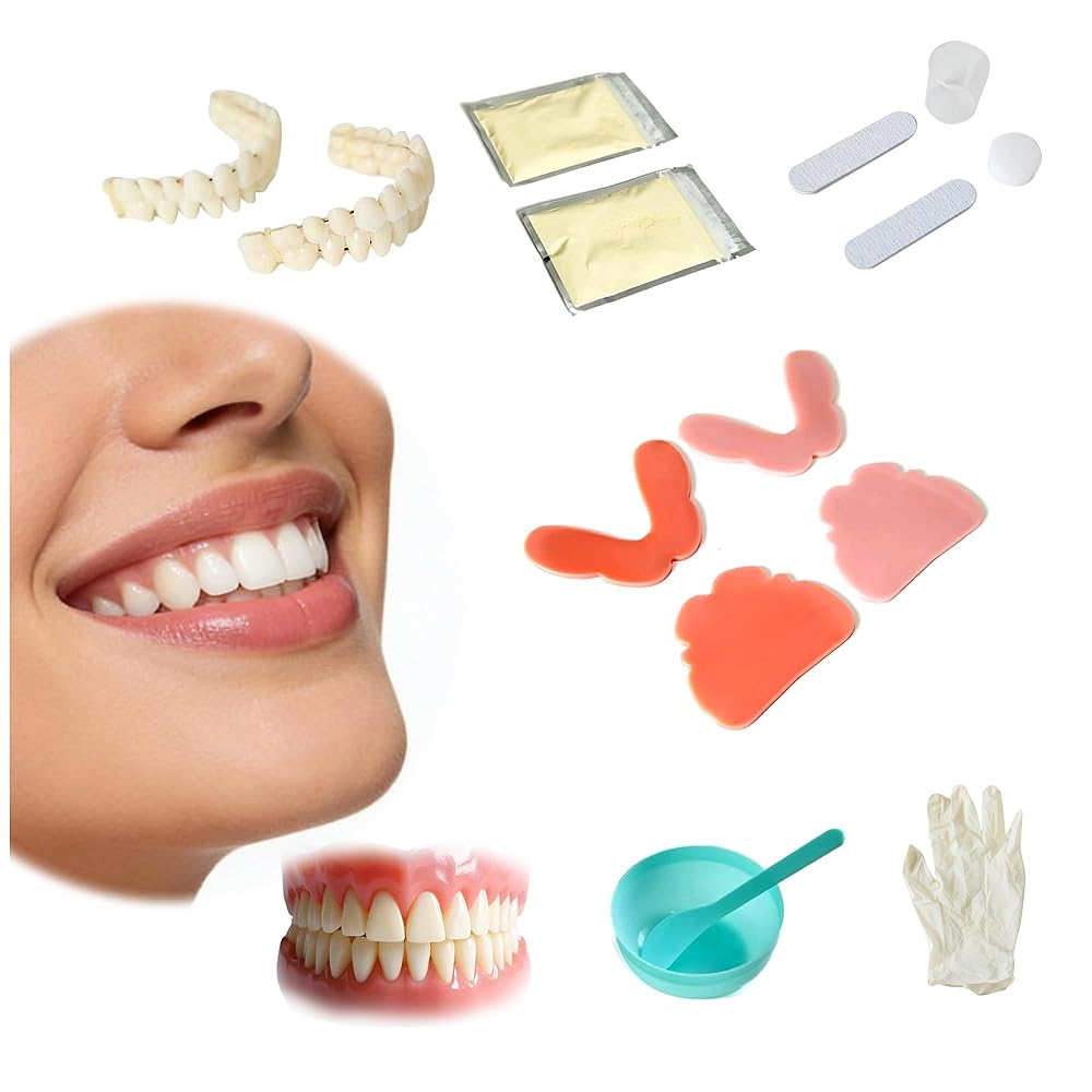 طقم أسنان مكون من 12 قطعة، مجموعتان (28 سنًا لكل مجموعة) من الأسنان الصناعية بأحجام مختلفة، للأسنان الصناعية الكاملة أو الجزئية، تتضمن جميع اللوازم اللازمة لصنع أطقم الأسنان العلوية والسفلية في المنزل.