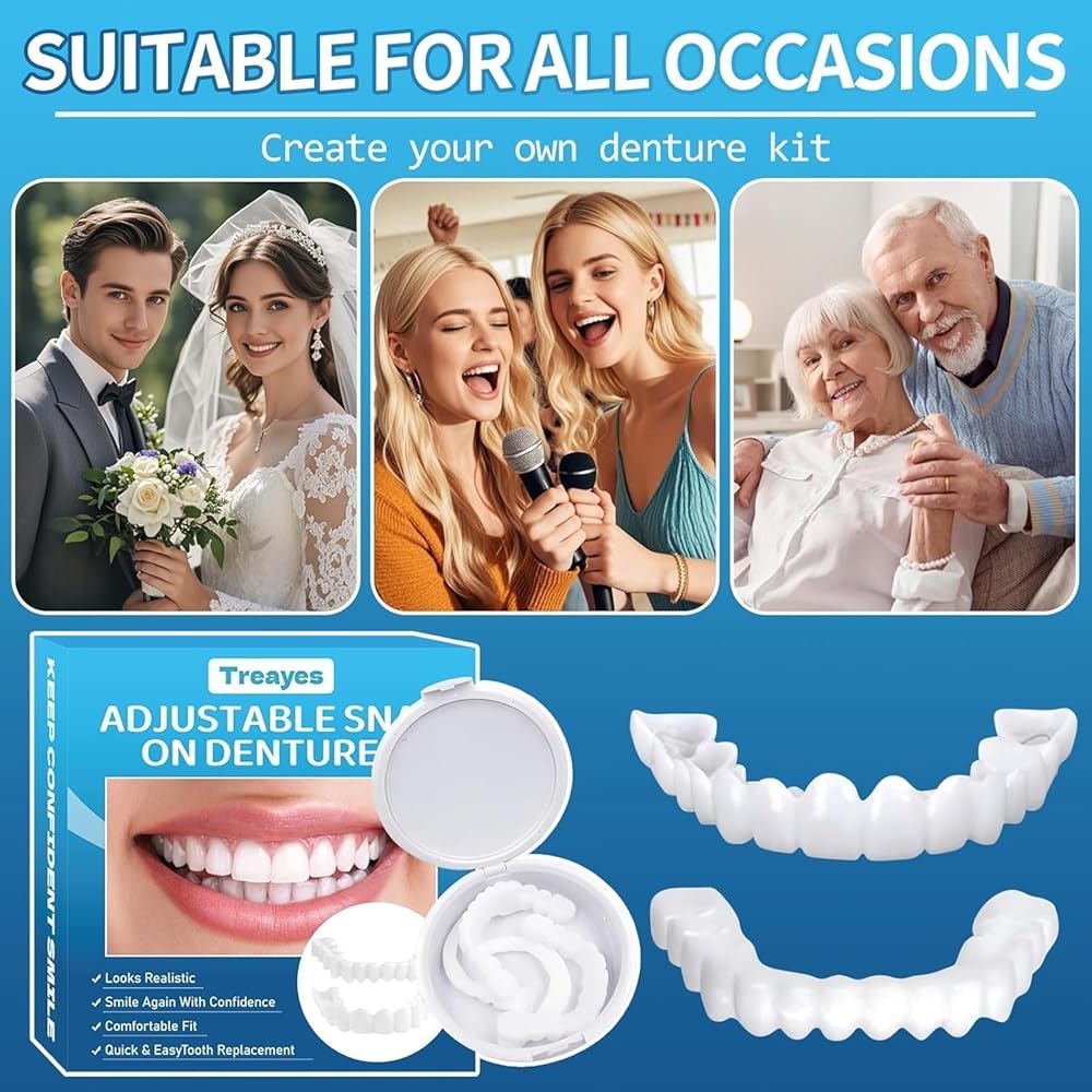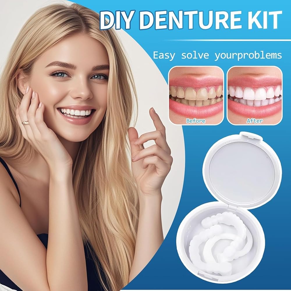 Temporary Veneers Kit for Women and Men, A Pair of Upper and Lower Replacement Kit, Nature and Comfortable