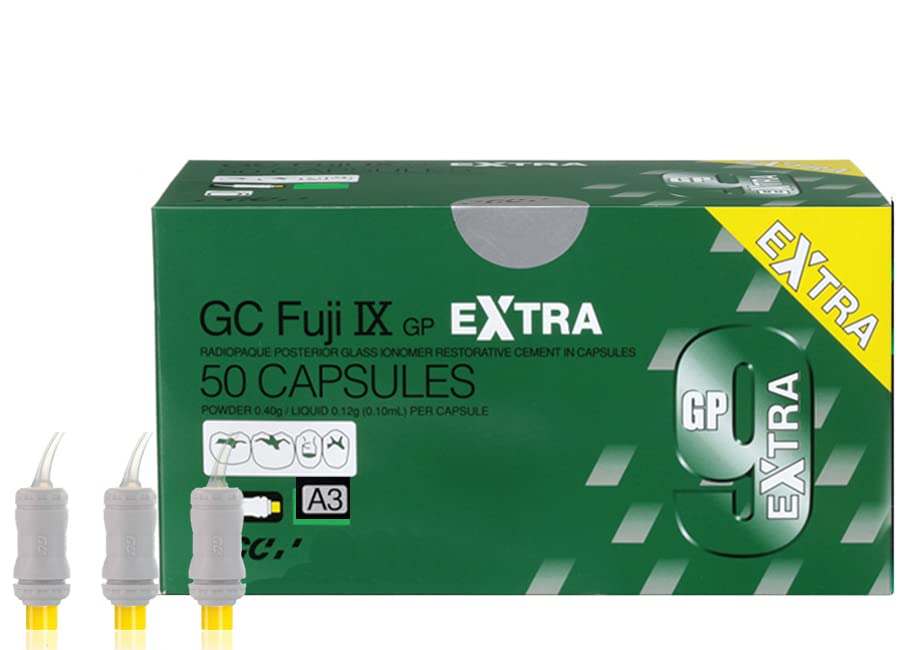 The GC Fuji IX GP Extra Glass Ionomer Dental Capsules A3 Shade 50/Pk, provide a high-strength restorative solution in convenient capsule form. This pack contains 50 A3 shade capsules of the extra durable formula, ideal for stress-bearing areas and long-lasting restorations. The packable consistency allows for easy condensation and adaptation, while the self-cure system delivers reliable performance without light curing. With superior physical properties and fluoride release, Fuji IX GP Extra is perfect for Class I, II, and V restorations in permanent teeth. The pre-proportioned capsules ensure consistent mixes every time for efficient clinical workflow.