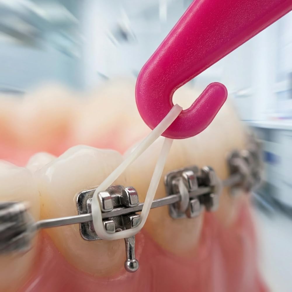 Easy to Use: The plastic dental placer for braces is equipped with a hook and a pusher. This 2-in-1 design enables you to install and stretch the rubber band using the hook, and remove it with the pusher