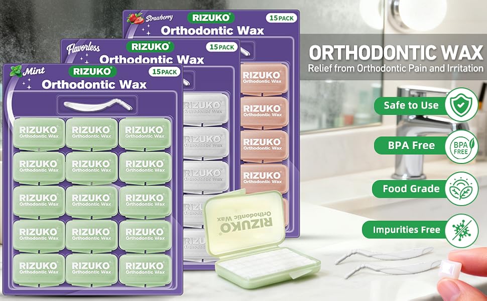 [طعام آمن - مادة من الدرجة الأولى لراحة البال]: شمع ريزوكو لتقويم الأسنان الخاص بنا مصنوع من مكونات آمنة غذائيًا - تحمي فمك من التهيج، ويمكن استخدامه بأمان في الفم، مما يوفر لك تجربة موثوقة للعناية بالأسنان لتقويم الأسنان.