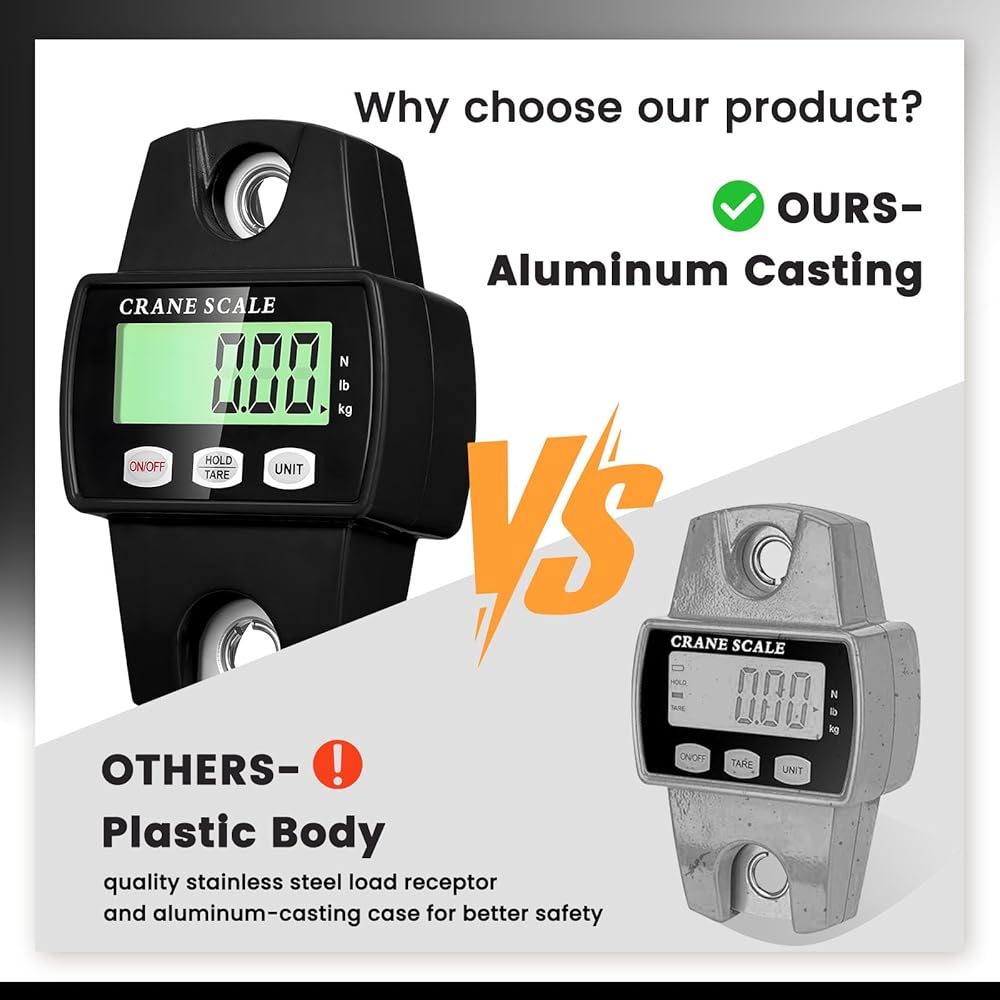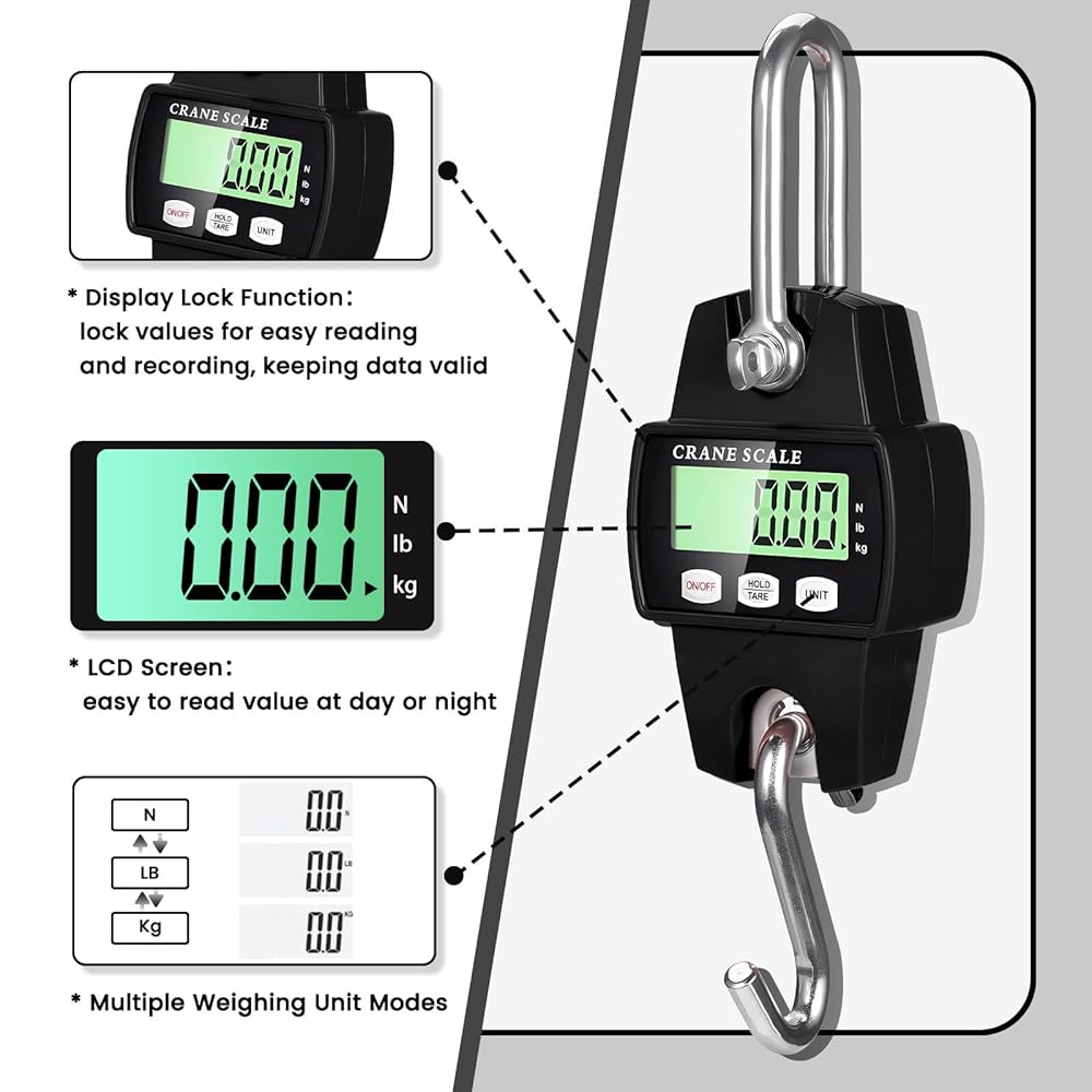 مواد فاخرة مطورة: تم تصميم ميزان التعليق الرقمي من سبائك الألومنيوم عالية القوة والمقاومة للتآكل وحلقات وخطافات تعليق معززة من الفولاذ المقاوم للصدأ. مثالية لصيد الأسماك في الهواء الطلق والصيد والمزارع والبساتين وتمارين صالة الألعاب الرياضية ووزن السفر. الخيار الأمثل لجميع احتياجات الوزن الخاصة بك